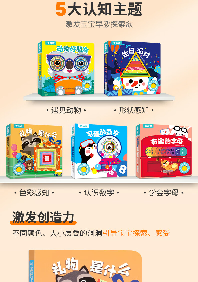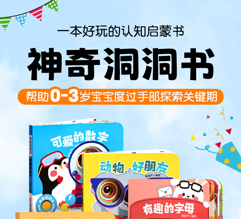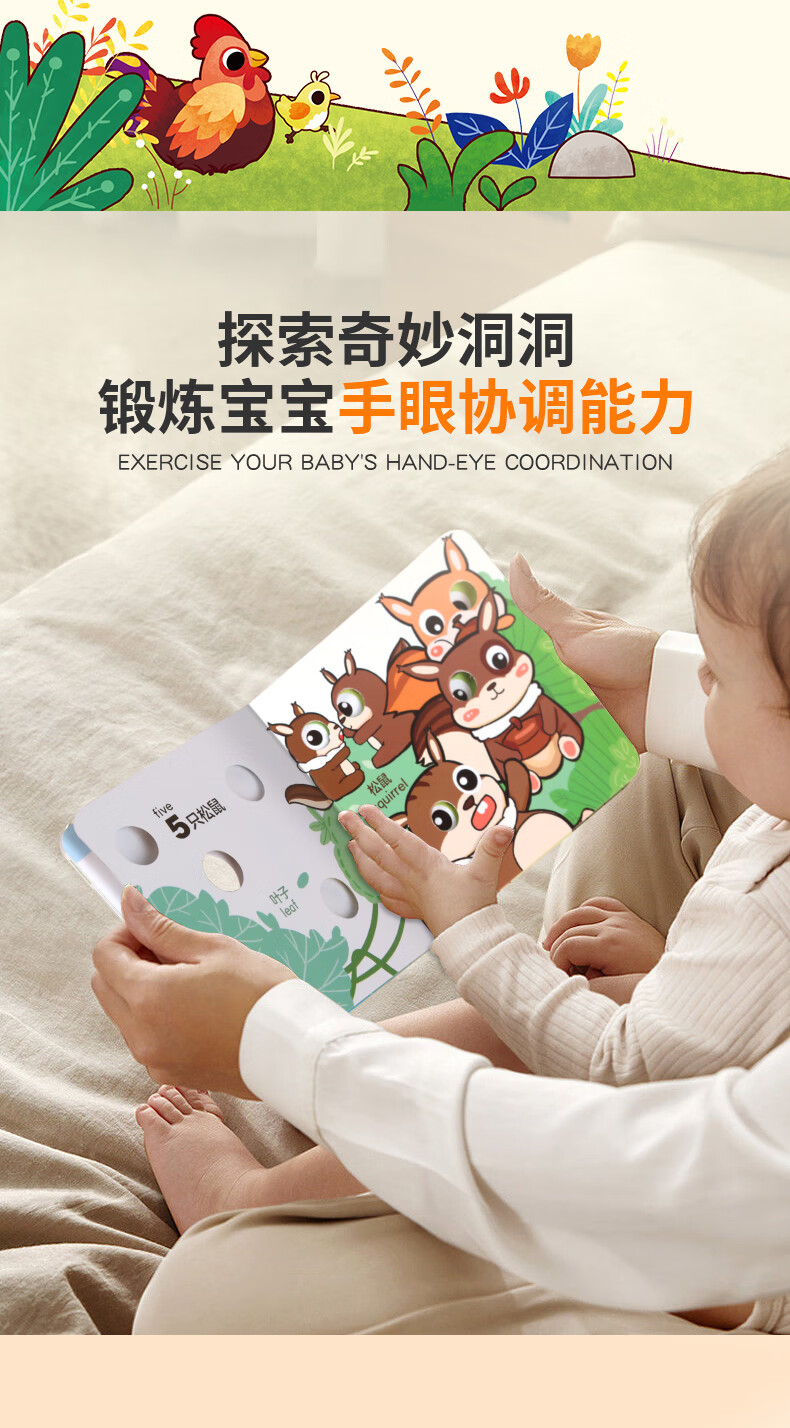 青葫芦神奇洞洞书0-3岁幼儿童撕不烂奇妙翻翻书中英双语早教幼儿启智启蒙认知绘本 【中英双语】神奇洞洞书 (共5册)