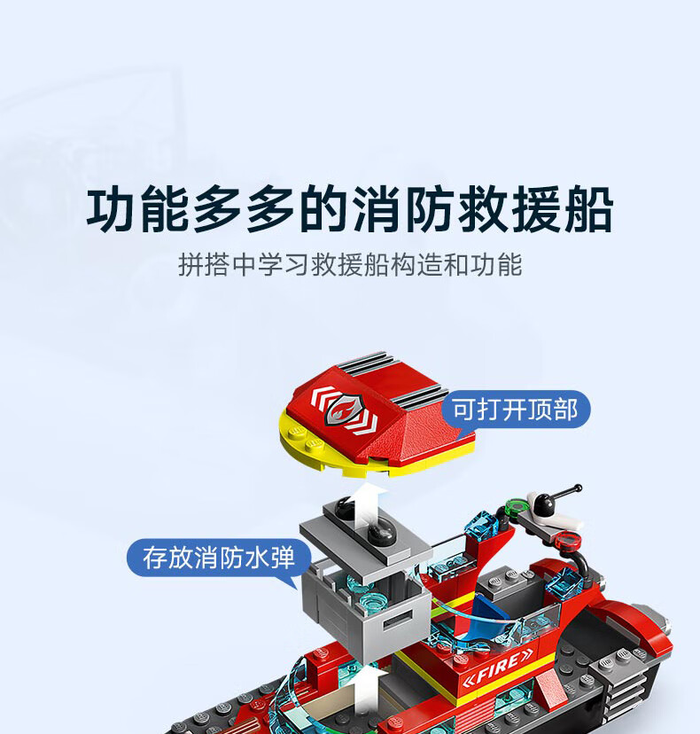 乐高(LEGO)积木拼装城市系列60373 消防救援艇男孩儿童玩具生日礼物