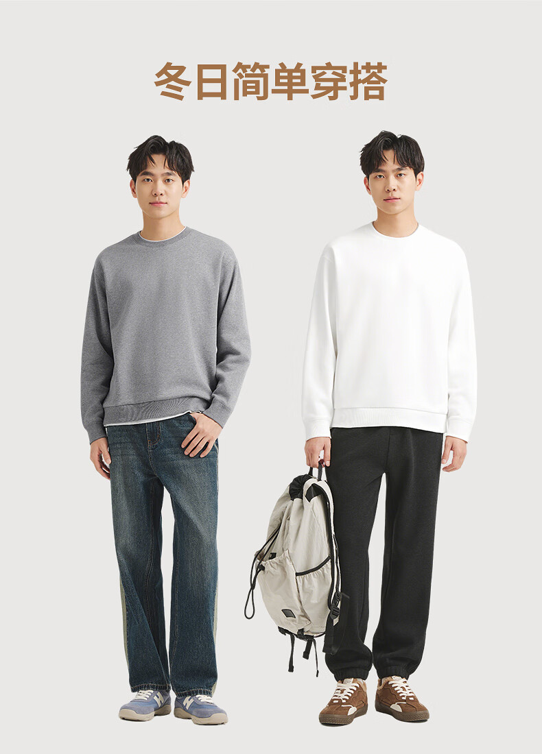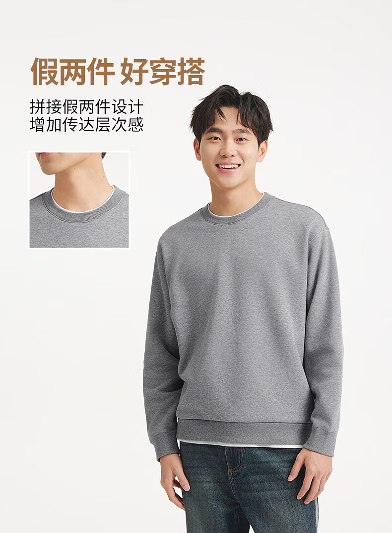 热风(Hotwind)男士加绒卫衣2025年冬季新款假两件韩系打底内搭圆领保暖卫衣 04白色 S