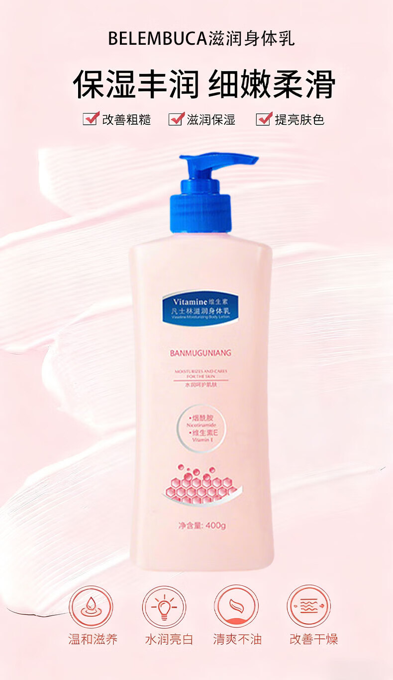 BELEMBUCA烟酰胺身体乳全身嫩白提亮保湿滋润肤乳女男持久留香 烟酰胺身体乳*400ml