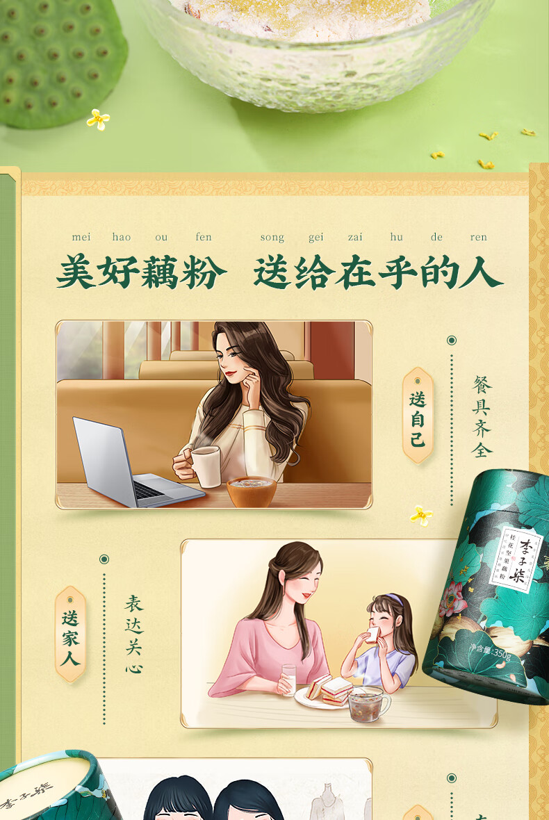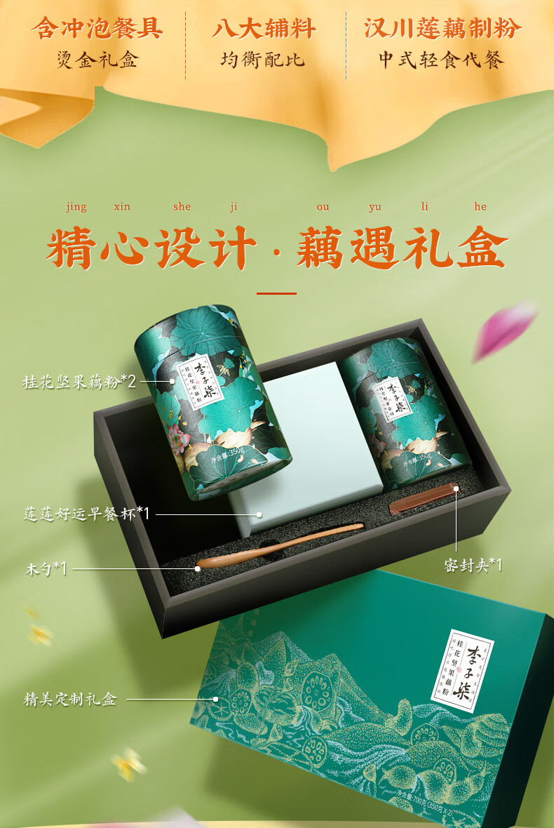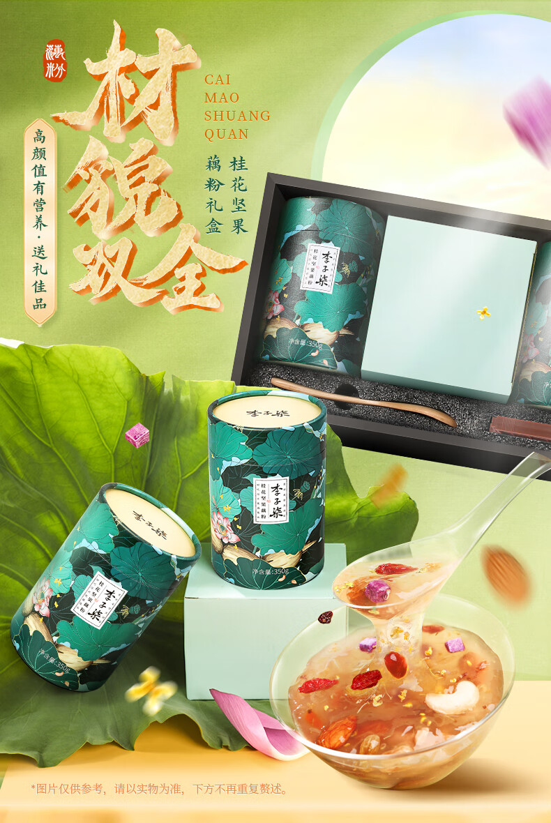 李子柒桂花坚果藕粉年货礼盒 营养代餐 350g*2罐 送父母长辈老人礼物