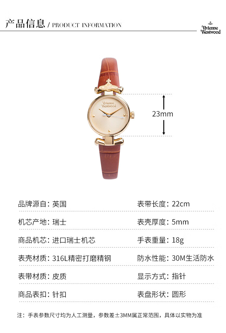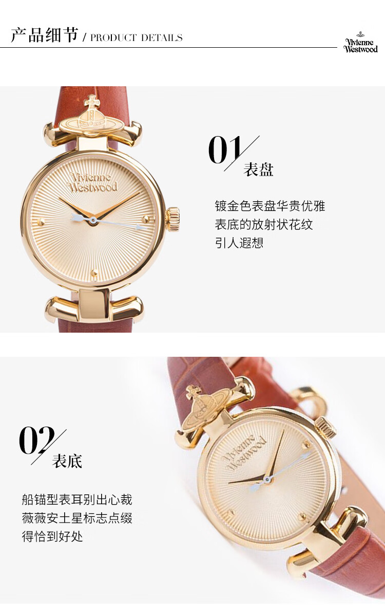 薇薇安·威斯特伍德(Vivienne Westwood)西太后女士手表皮带石英表女生日礼物送女友送老婆VV090GDBR