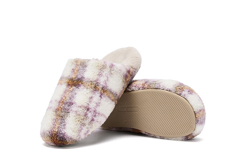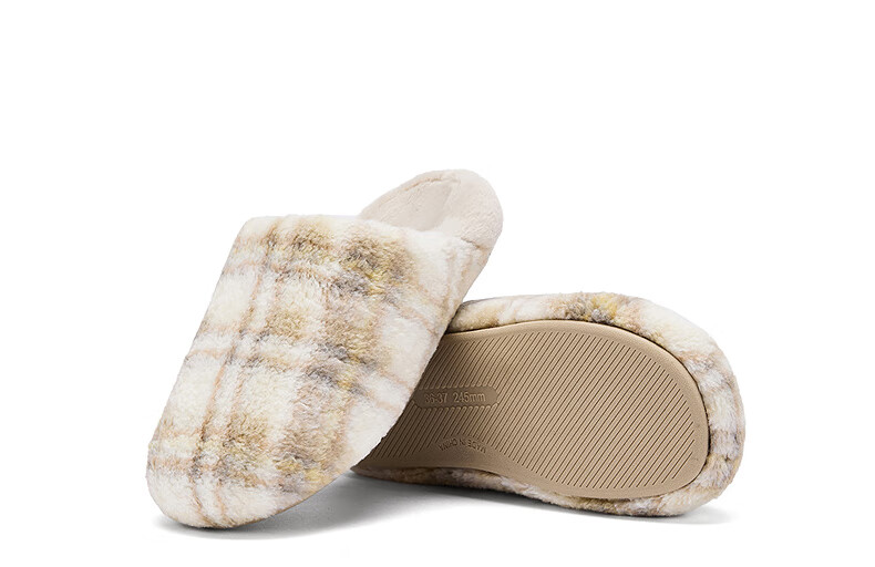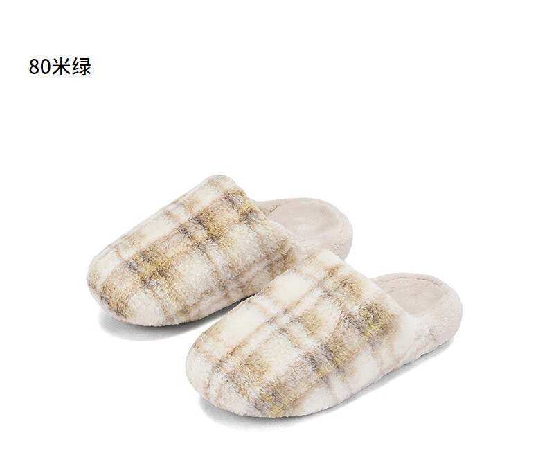 热风毛绒家居拖女2025年冬季新款经典格子毛毛鞋加绒保暖包头半拖 80米绿 36-37 S