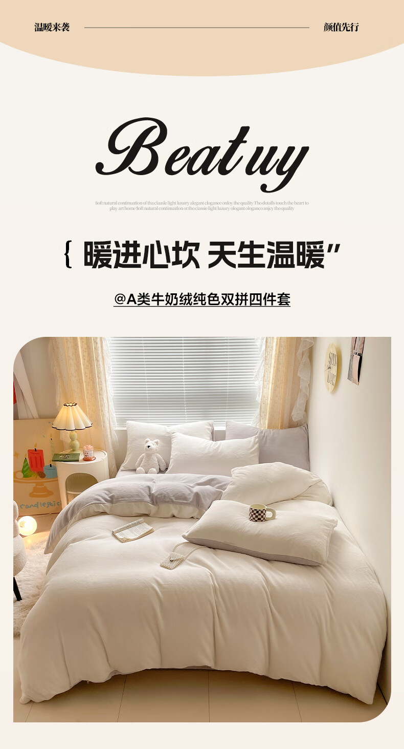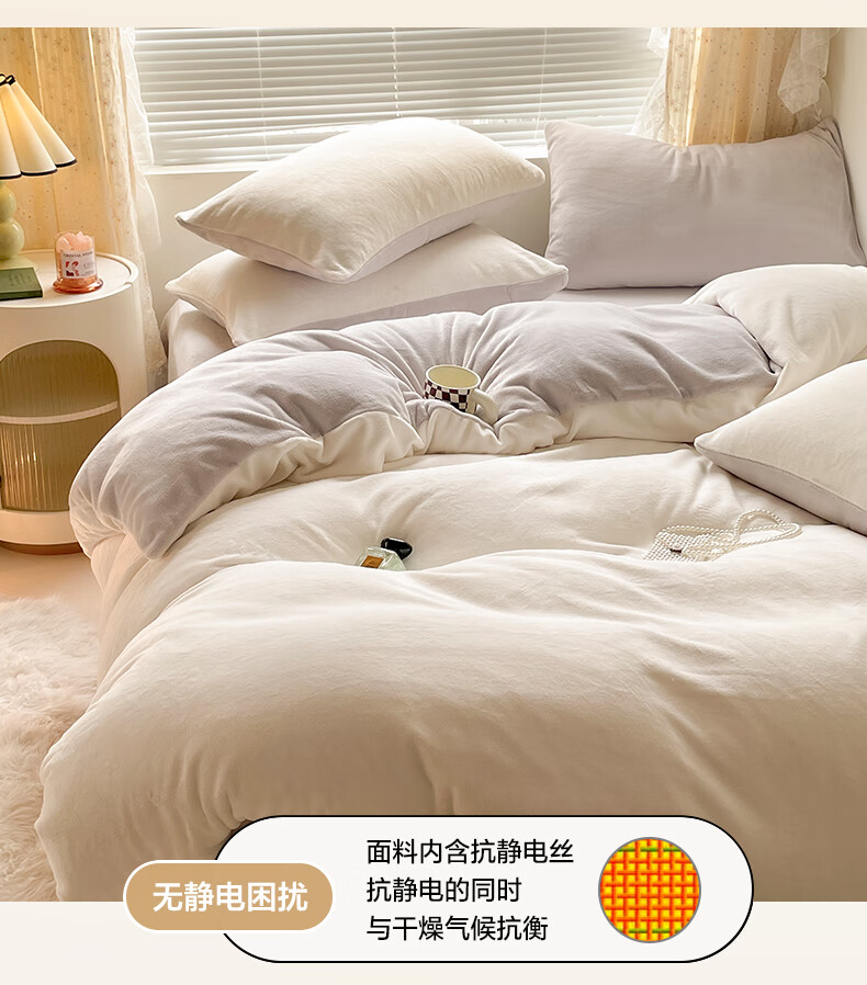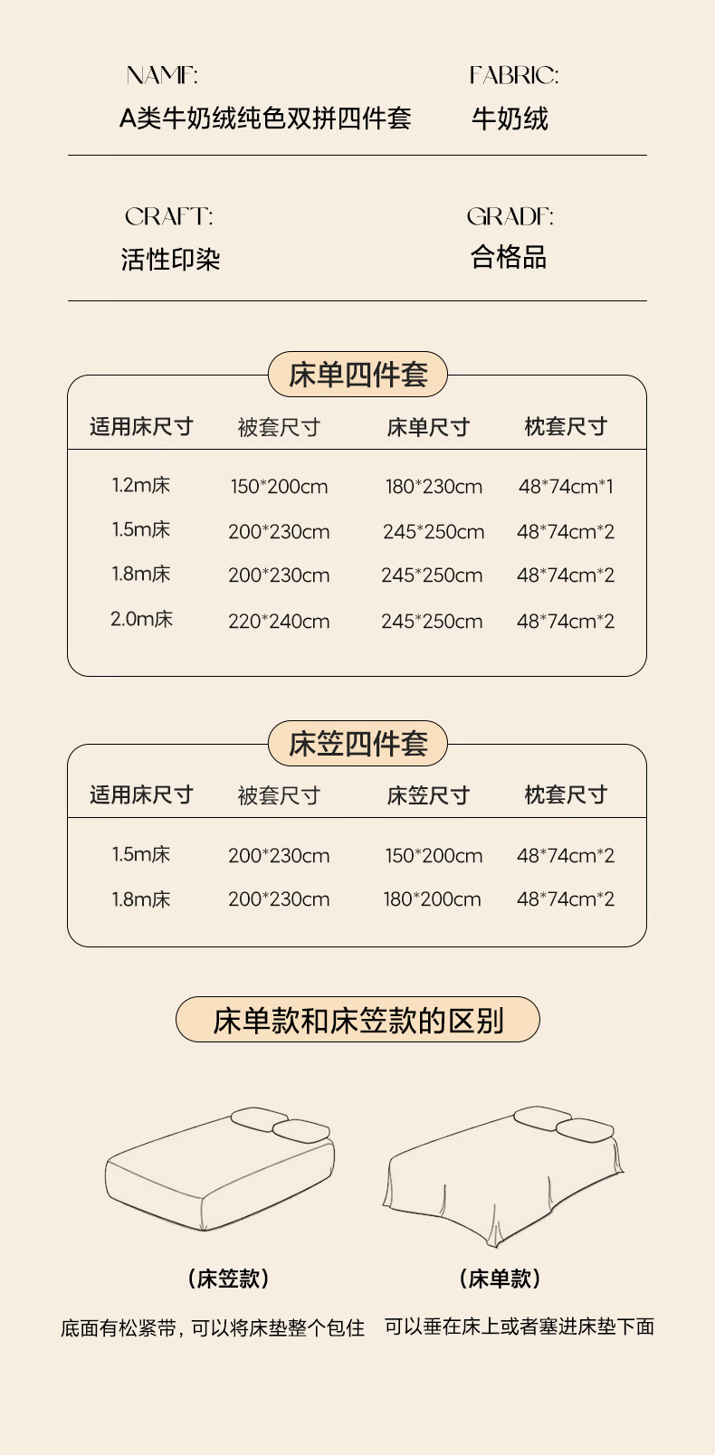 苏萱冬季塔芙绒床笠单件2025新款牛奶绒床罩床垫保护罩套加绒防滑床单 素简-卡其 200x220cm床笠+枕套一对