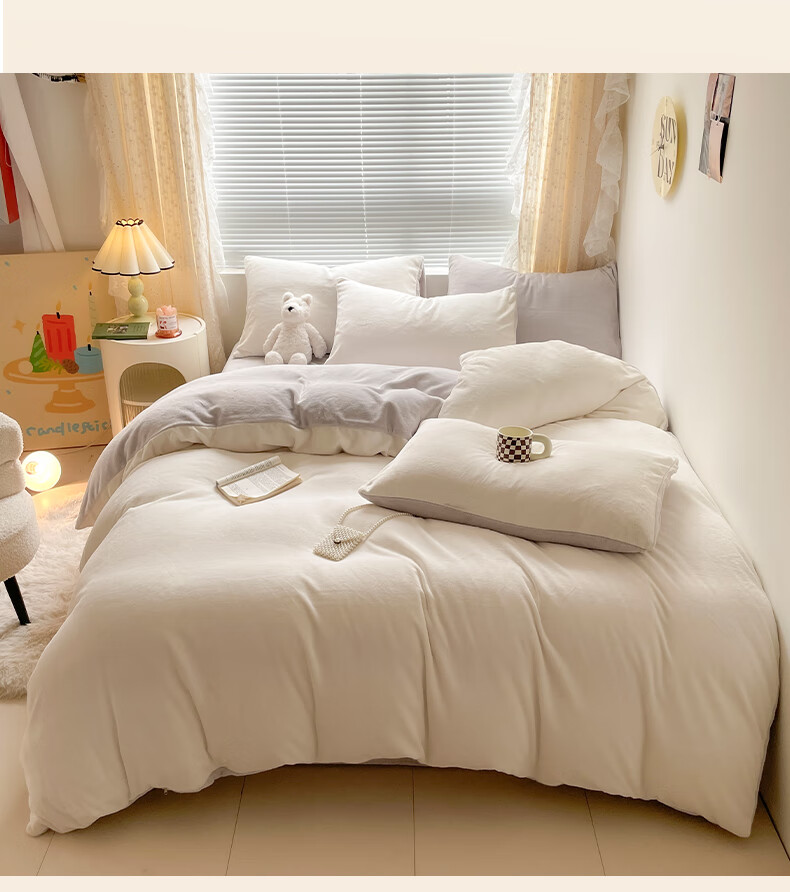 苏萱ins波点牛奶绒床上四件套加厚保暖毛球边被套床单宿舍床笠三件套4 毛球款-草莓波波 1.8m 床单款 四件套-被套200x230cm