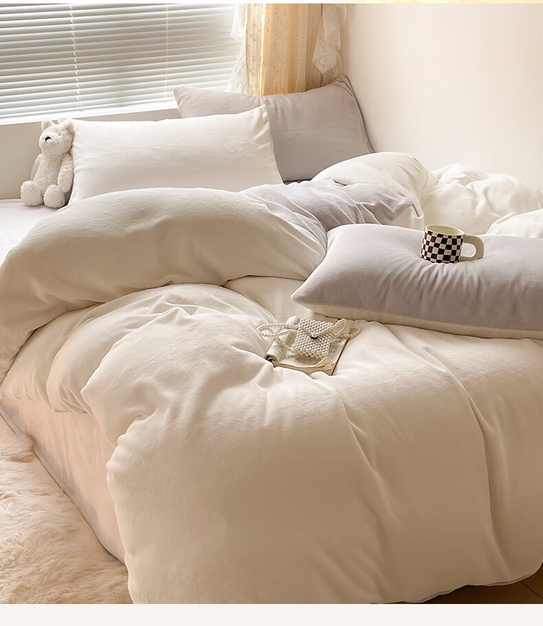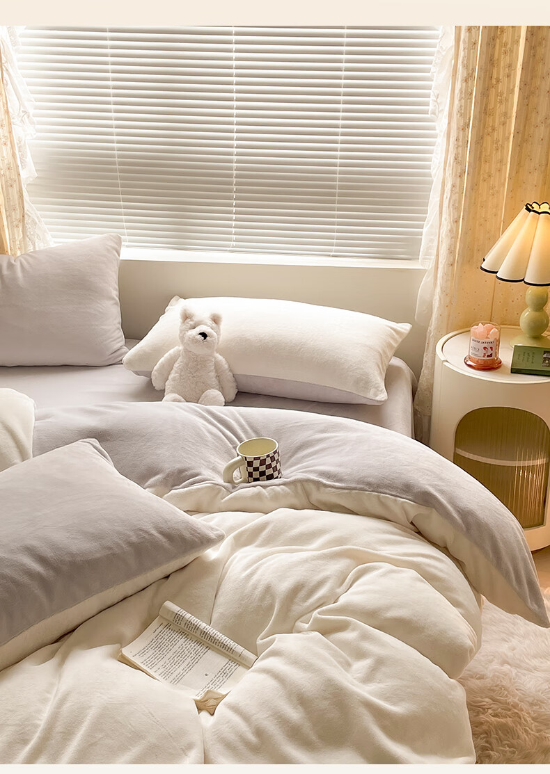 苏萱2025新款加厚牛奶绒床上四件套双面加绒珊瑚法兰绒被套床单三件套 深灰 1.8m 床笠款 四件套-被套200x230cm