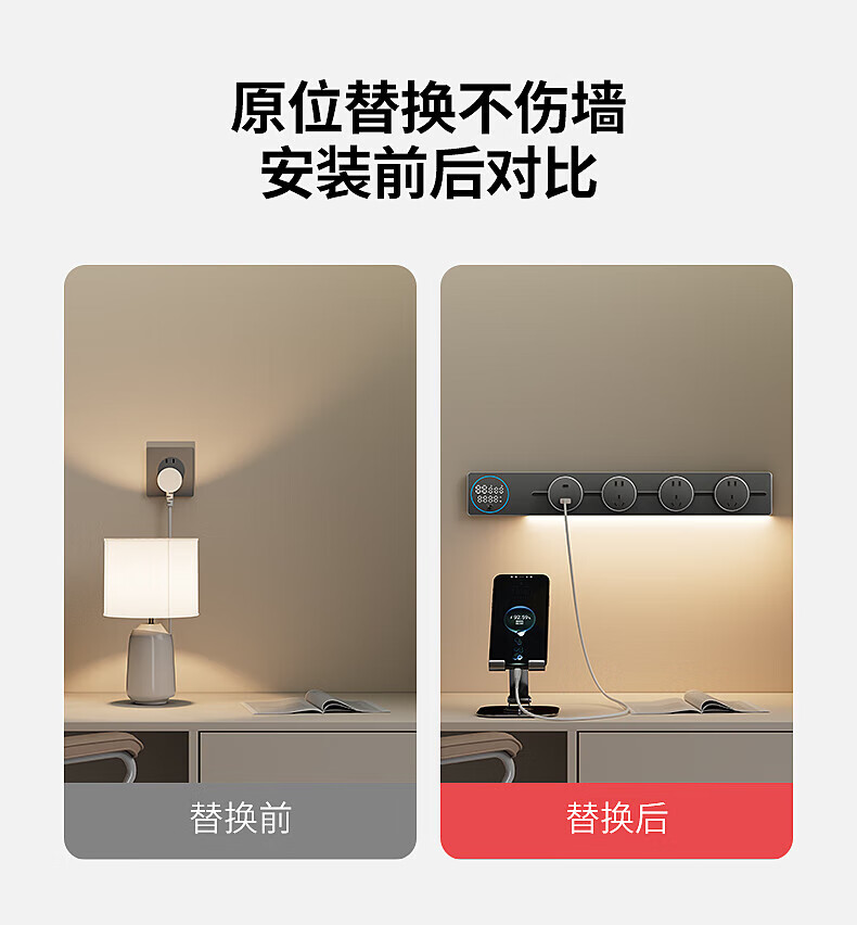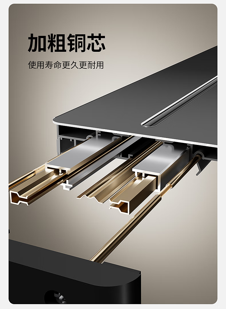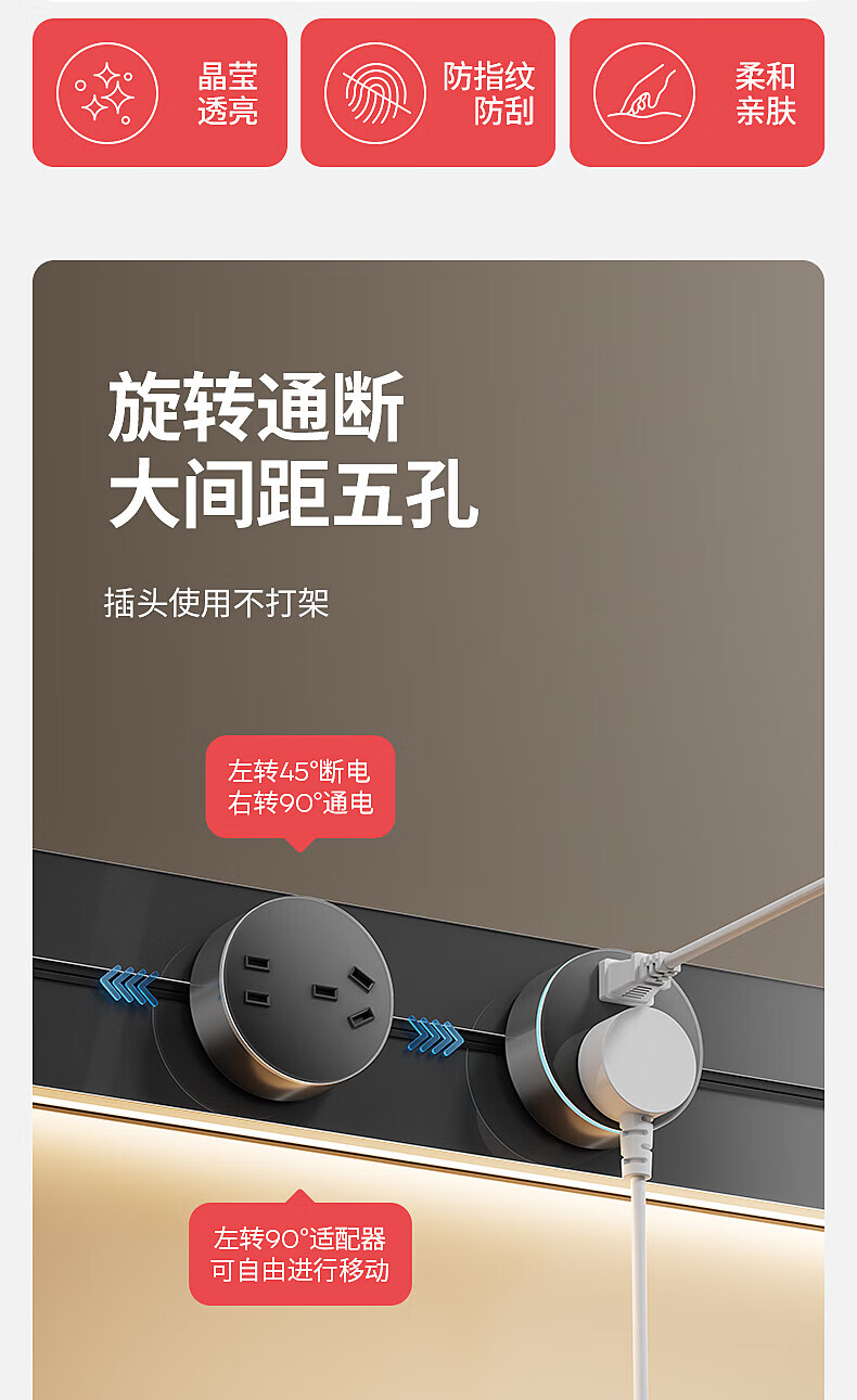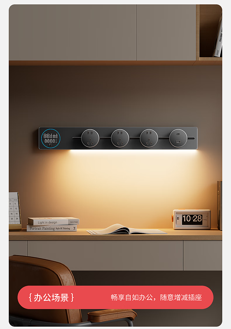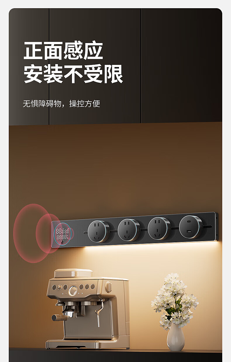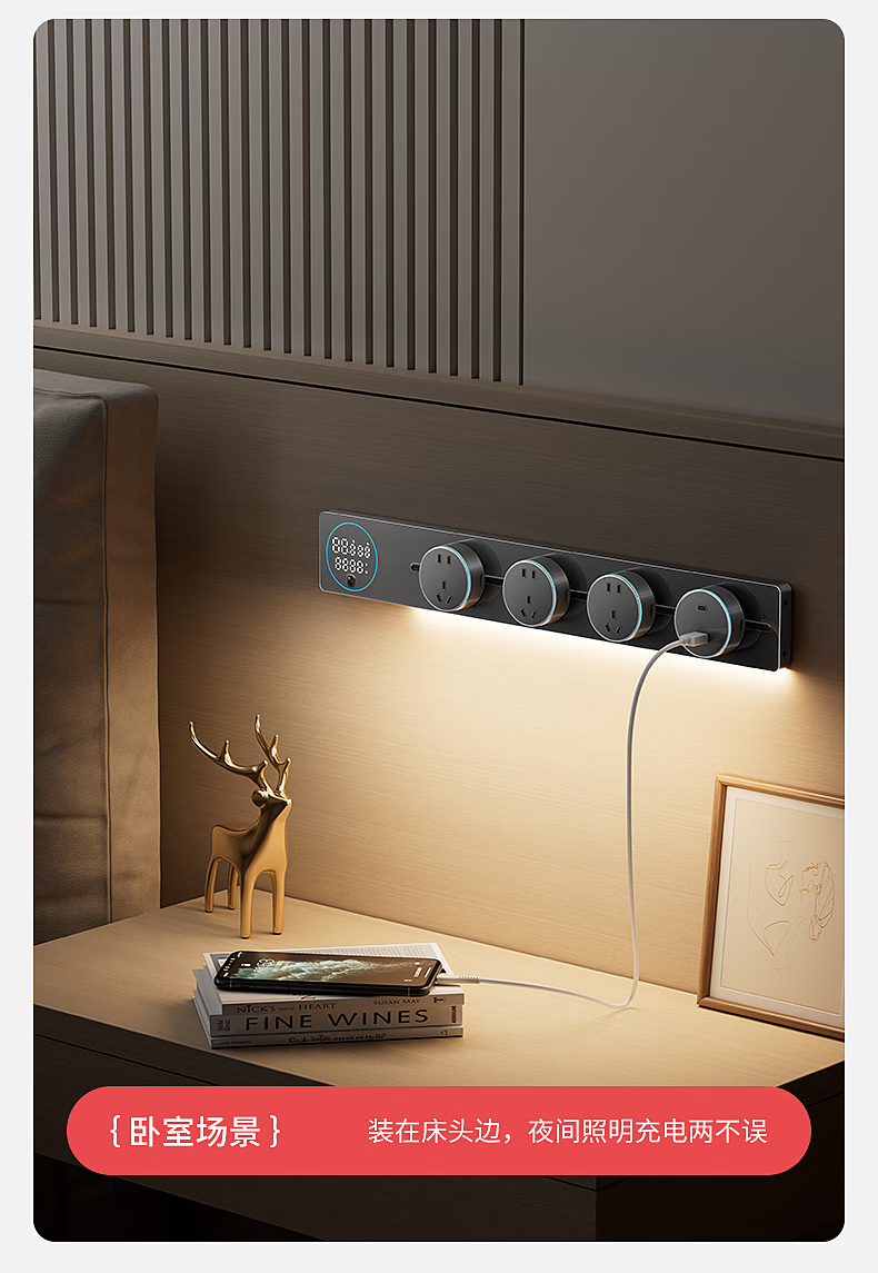 国际电工智能显示屏玻璃镜面轨道插座家用厨房餐边柜移动带灯数显滑动插排 【水晶玻璃数显屏】灰色50cm+3个大五孔
