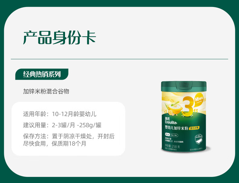英氏婴幼儿米粉混合谷物加锌营养米粉258g宝宝辅食营养米糊3阶10月龄+