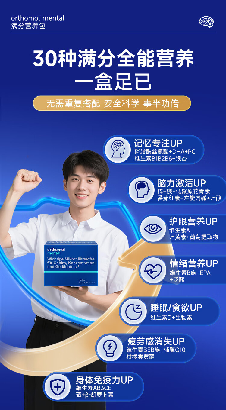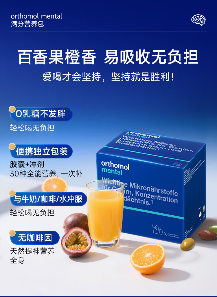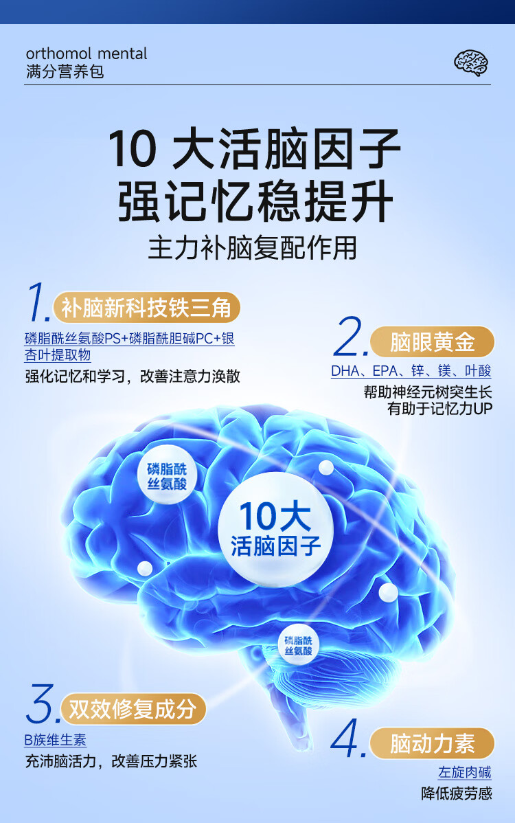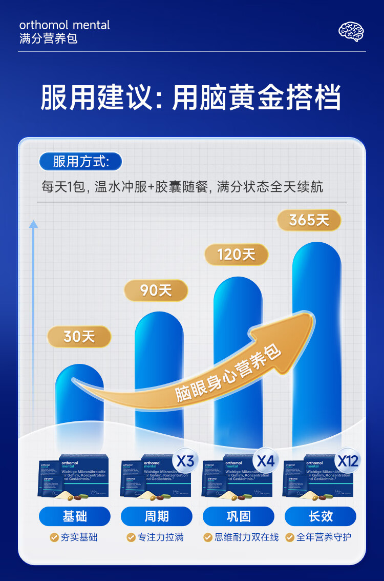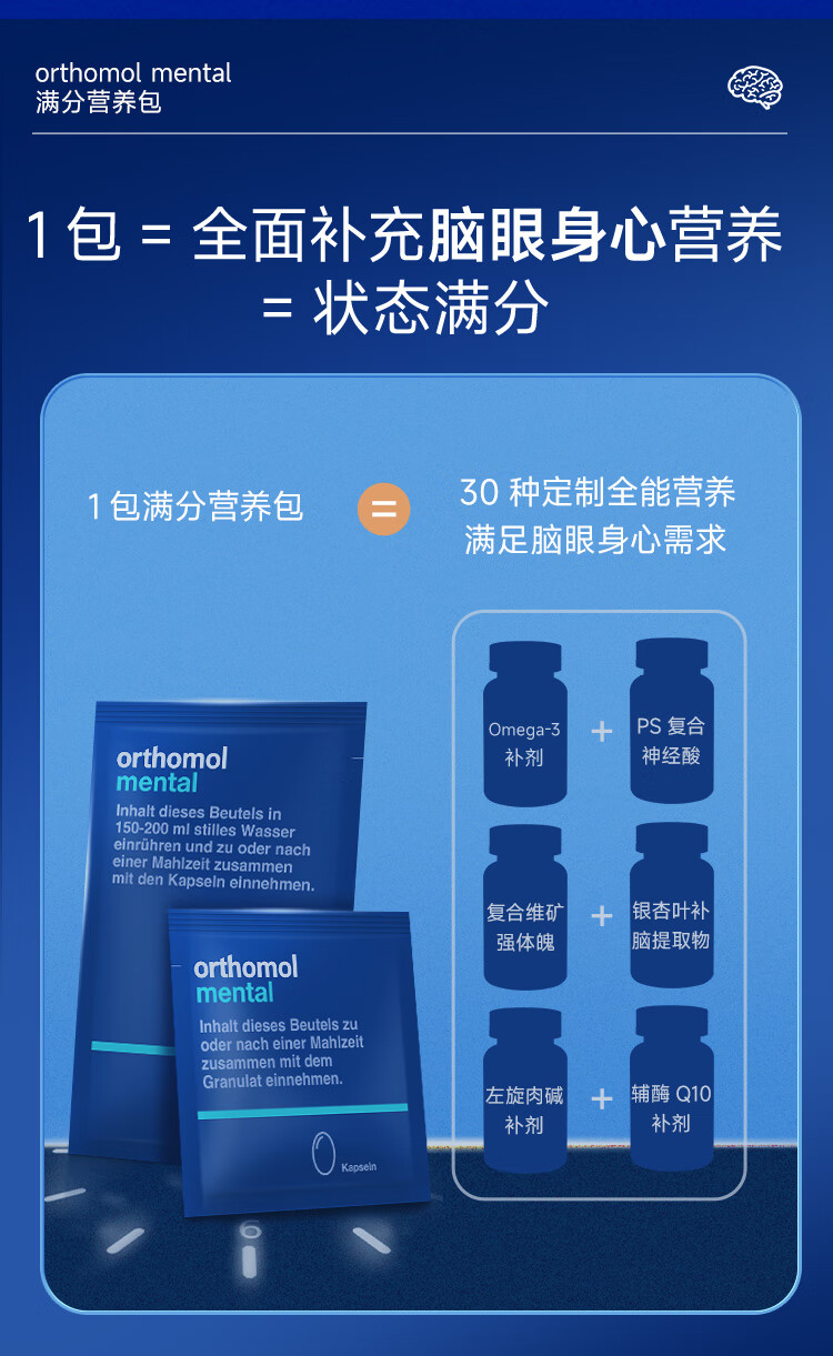 奥适宝(ORTHOMOL)神经酸补脑DHA增强大脑营养mental满分营养包30天 记忆力备考考研