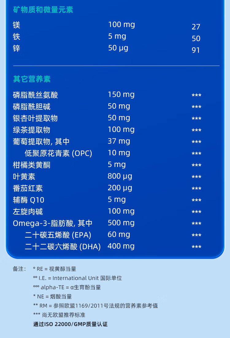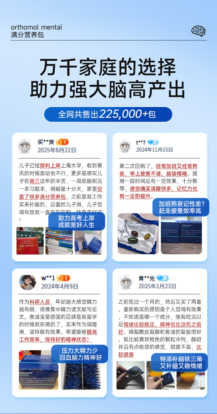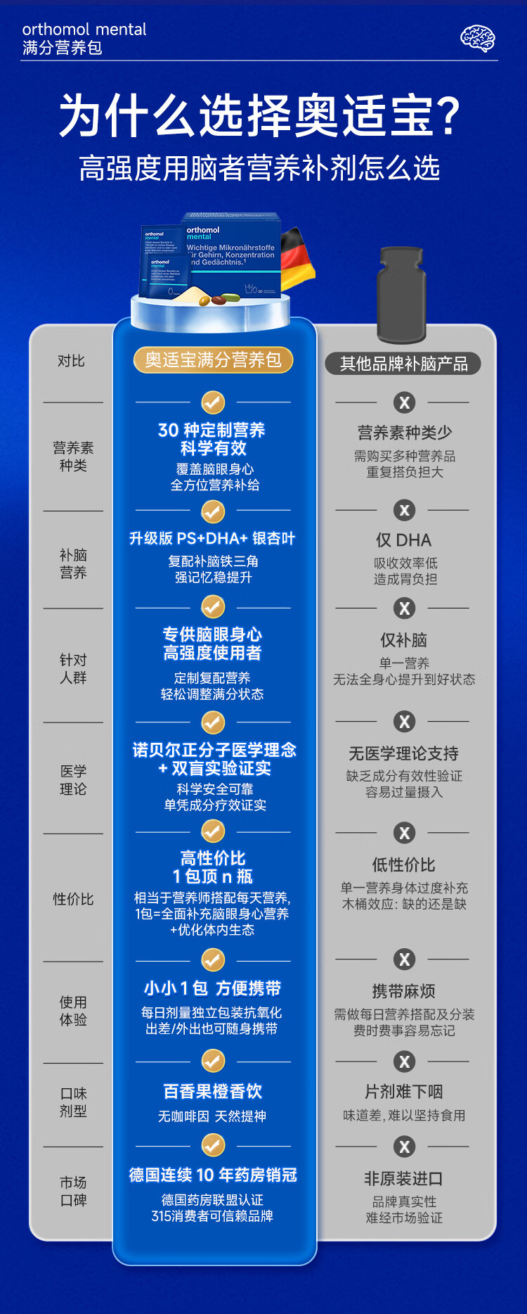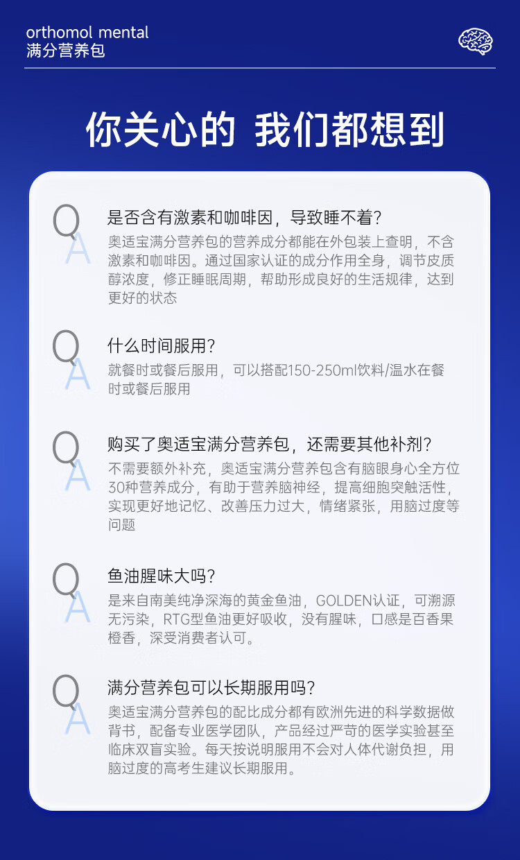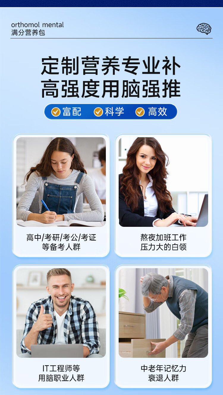 奥适宝(ORTHOMOL)神经酸补脑DHA增强大脑营养mental满分营养包30天 记忆力备考考研