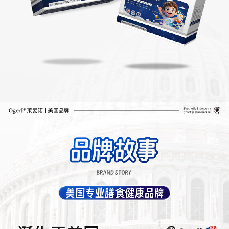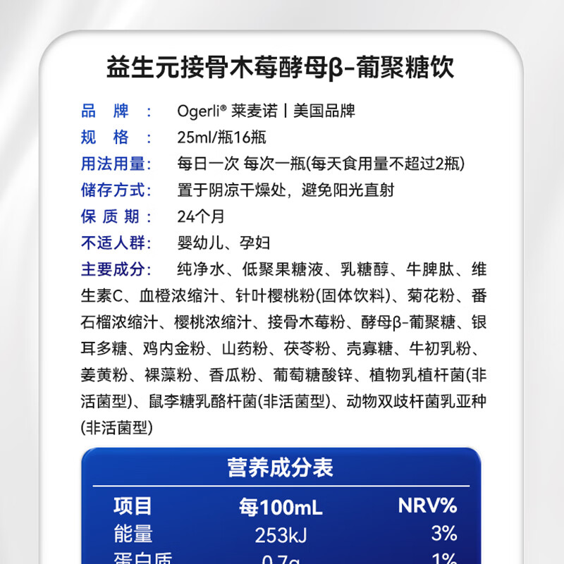 Ogerliβ-葡聚糖接骨木莓牛脾肽酵母葡萄糖酸脾胃调理养护儿童免疫力饮