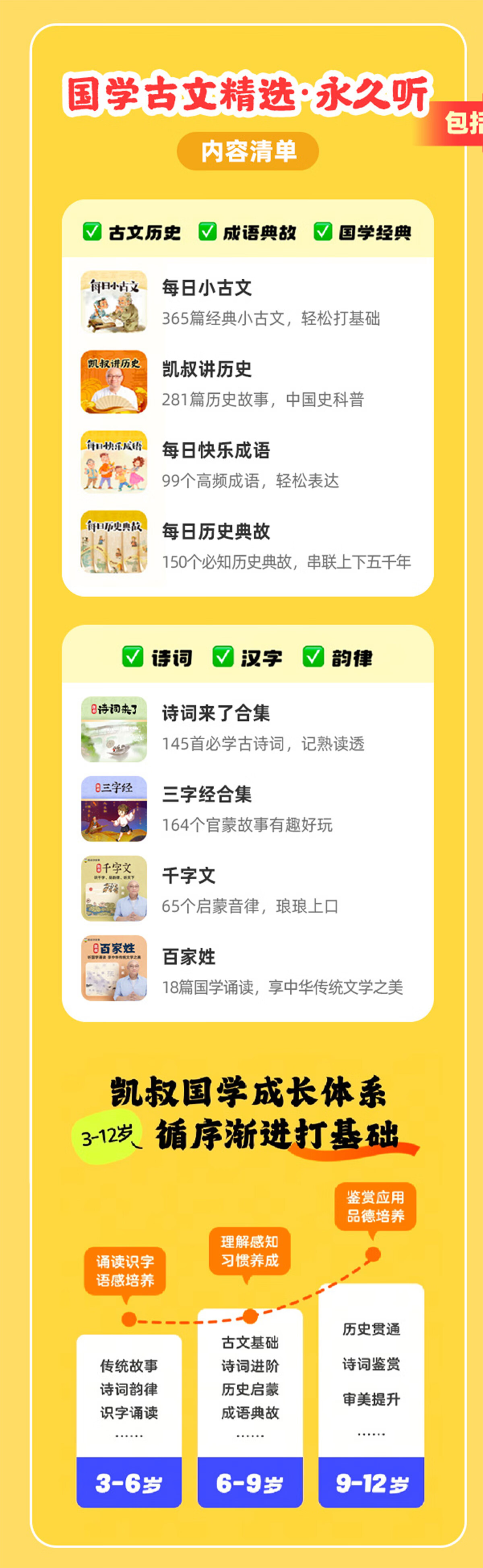 凯叔讲故事《国学古文精选》历史古文成语典故诗词汉字韵律永久听