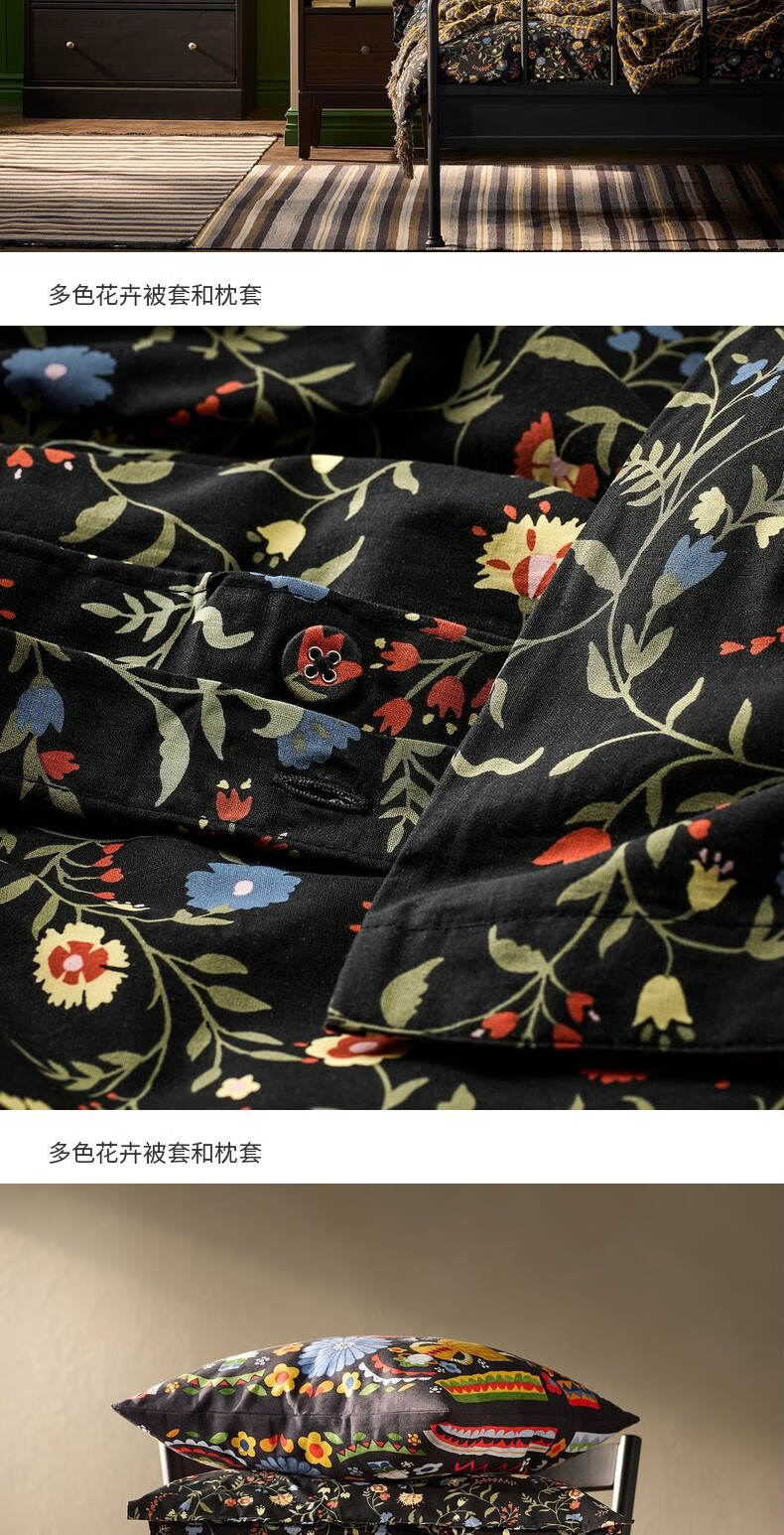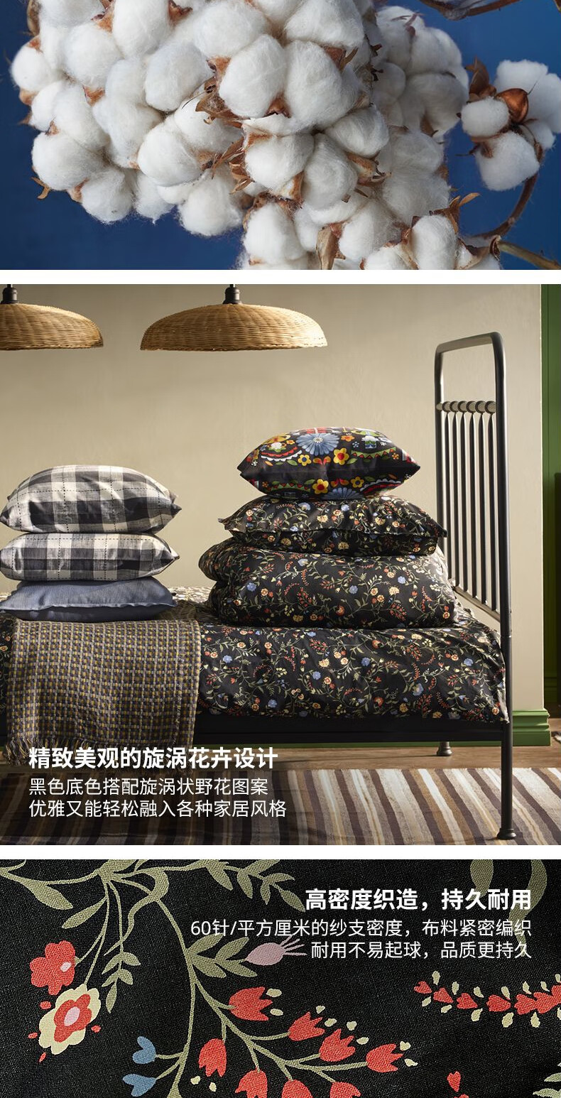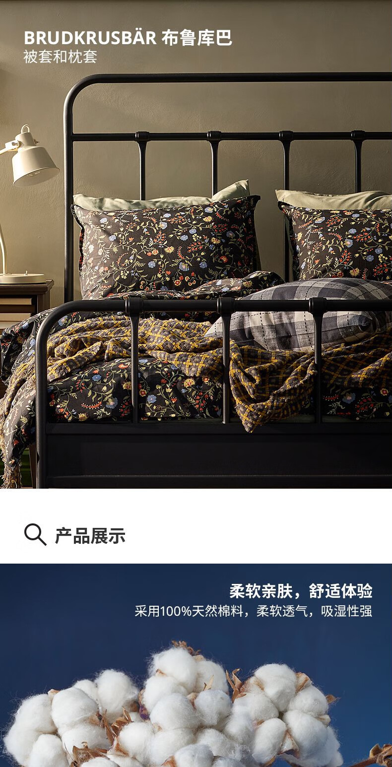 宜家(IKEA)【新品】BRUDKRUSBAR布鲁库巴纯棉被套枕套床上用品卧室 多色花卉被套和2枕套200X230cm
