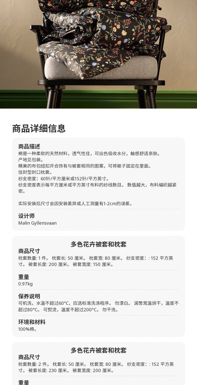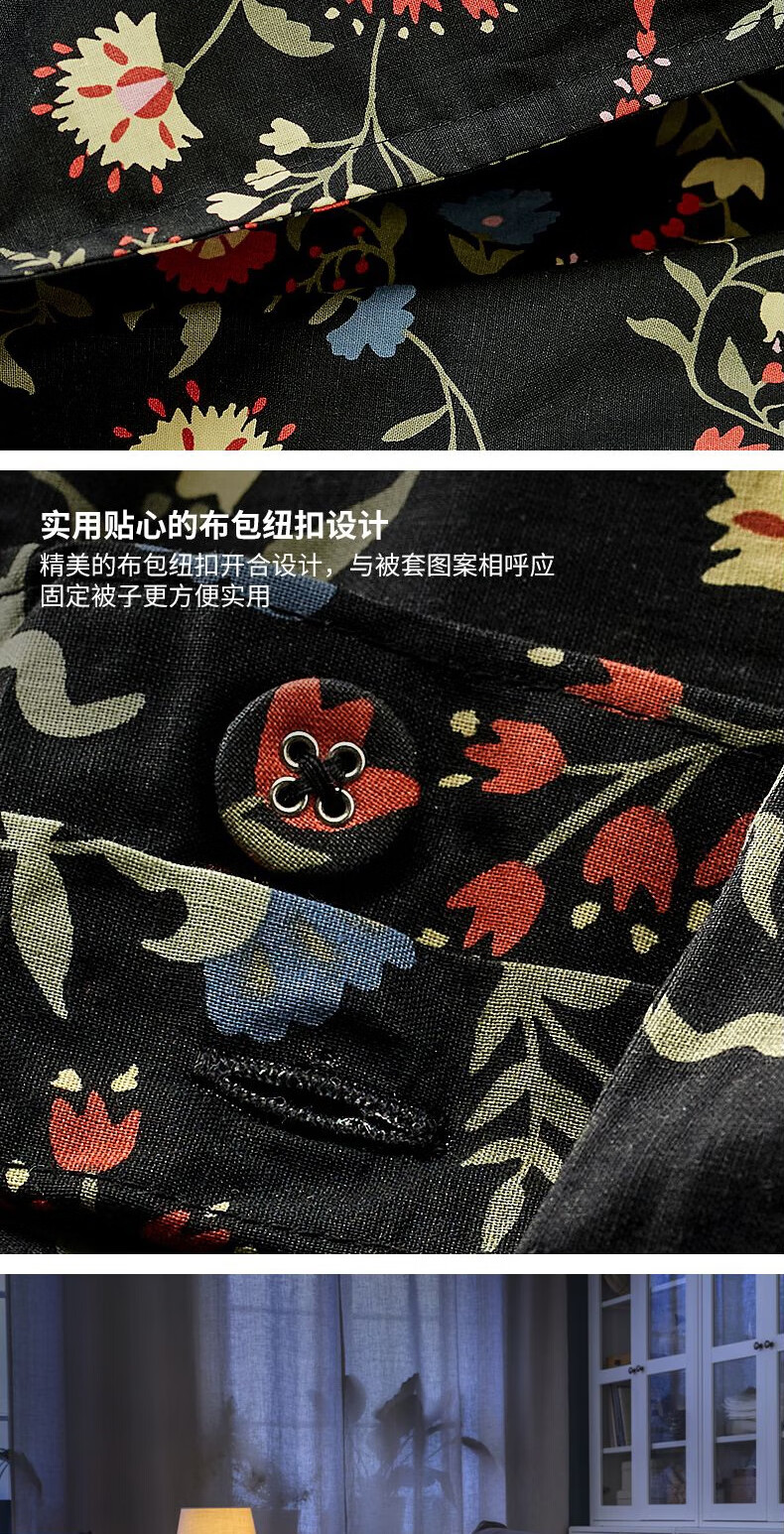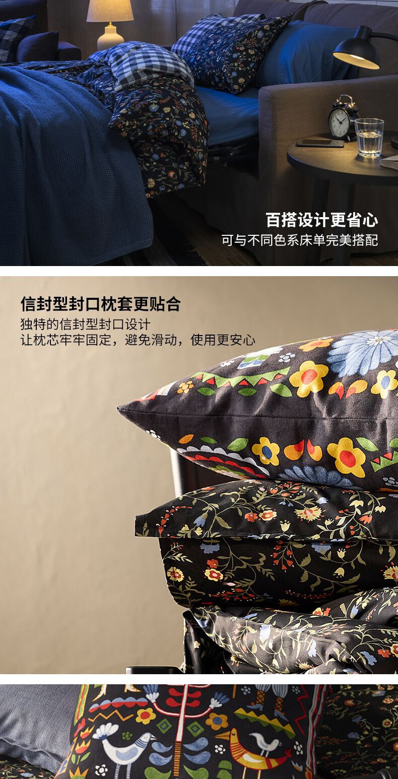 宜家(IKEA)【新品】BRUDKRUSBAR布鲁库巴纯棉被套枕套床上用品卧室 多色花卉被套和2枕套200X230cm