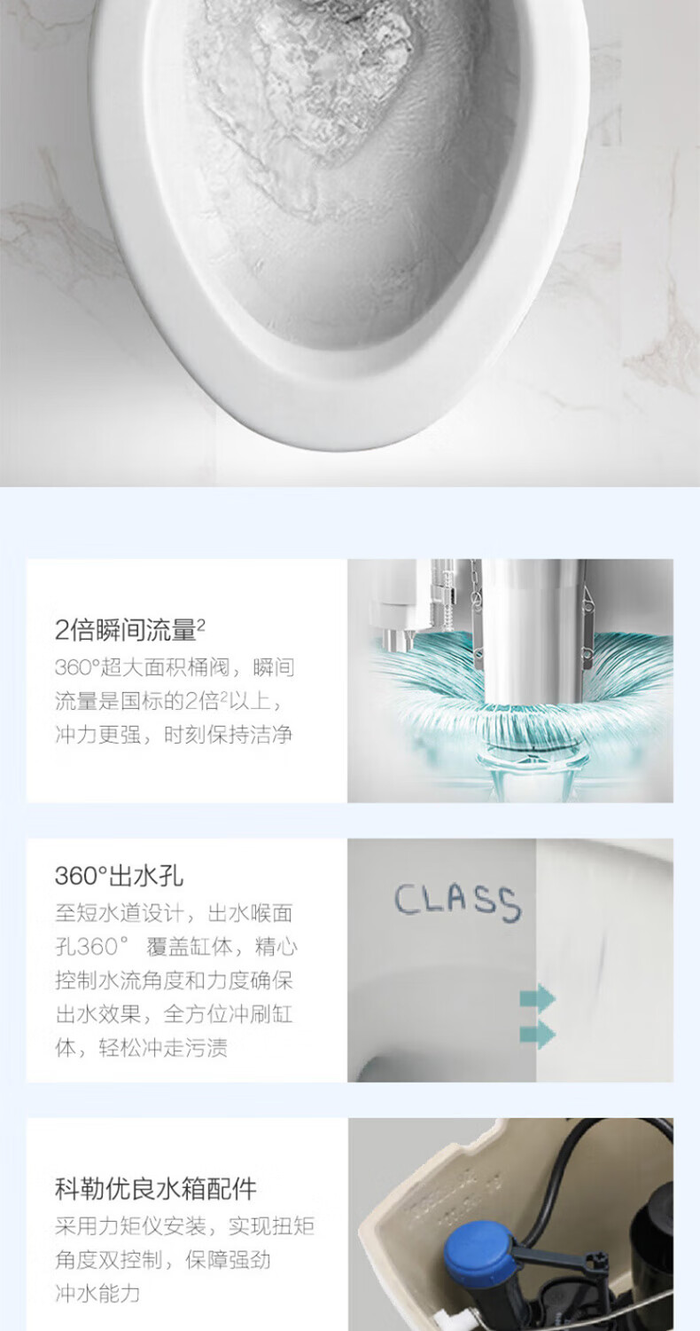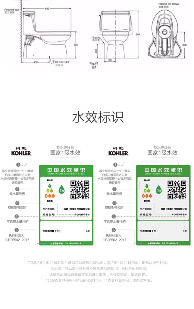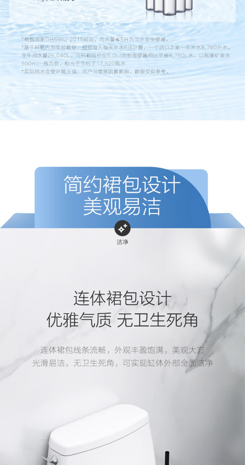 科勒(KOHLER)圣罗莎丽裙版家用马桶虹吸式坐便器抽水马桶五级旋风包安装 305mm