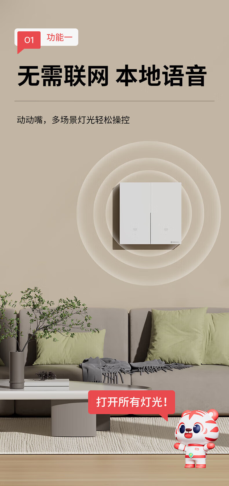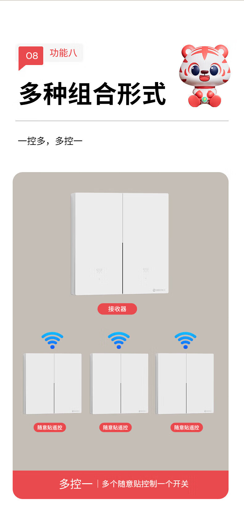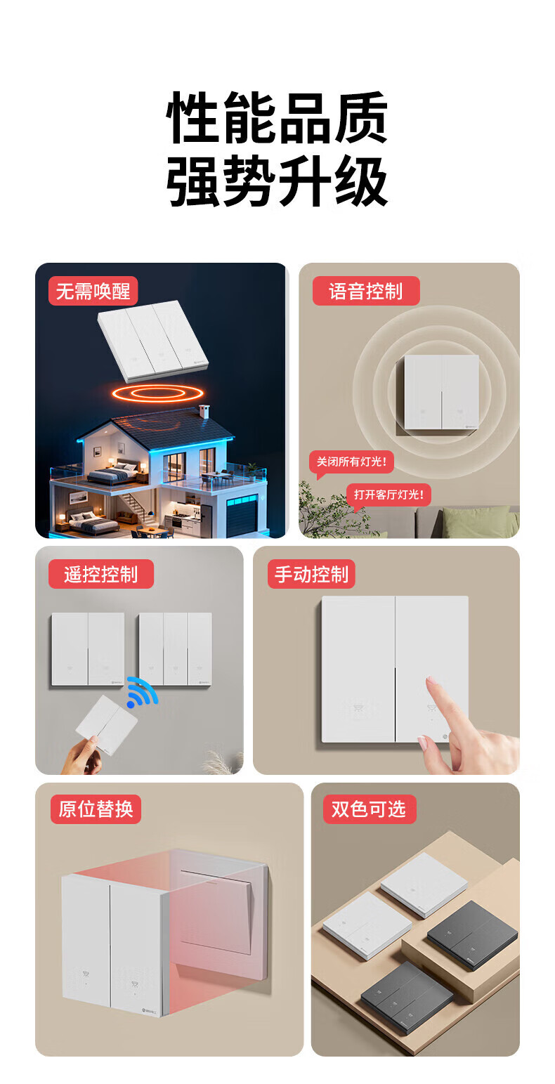 国际电工无线智能语音遥控开关双控家用免布线220V远程控制电灯照明随意贴 离线语音|灰色一开主机1个+一开随意贴1个