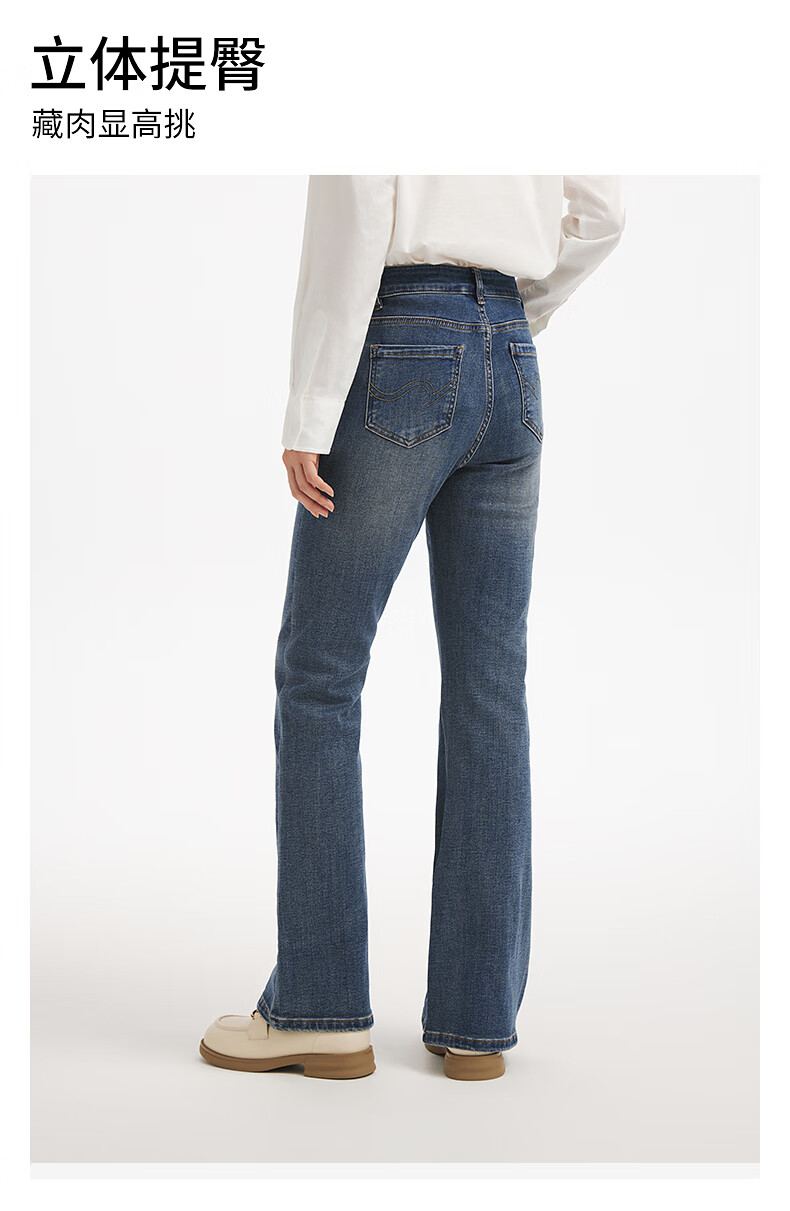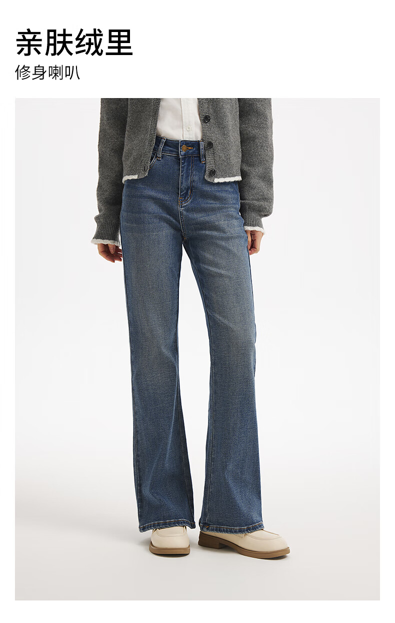 热风女士微喇裤牛仔长裤2025年冬季新款基础修身显瘦喇叭牛仔裤 06兰色 25