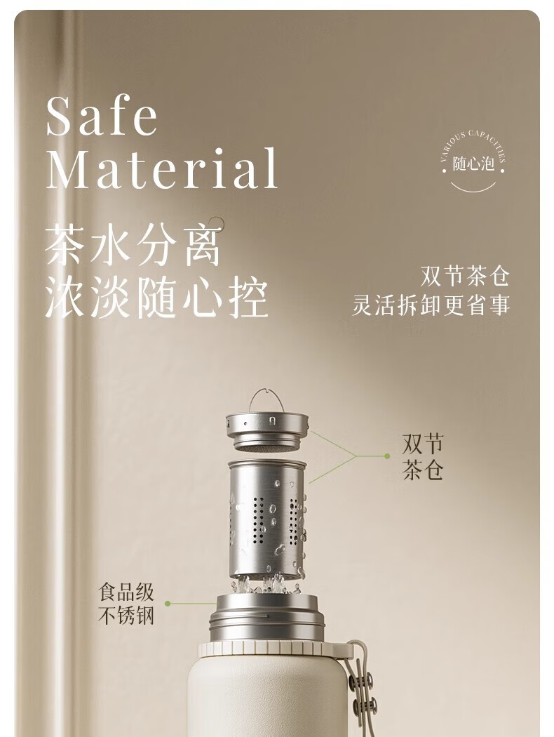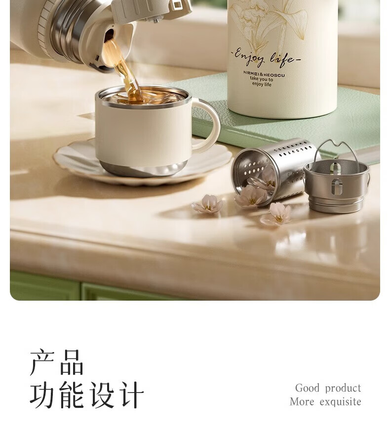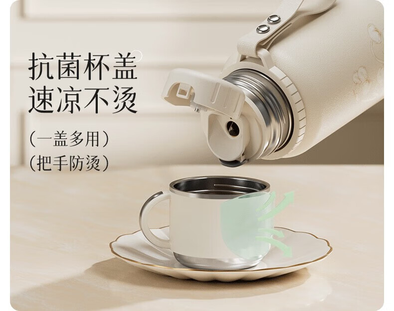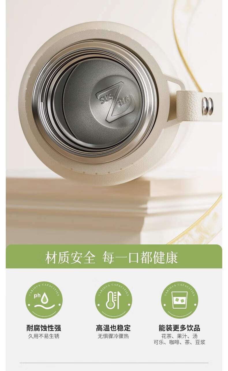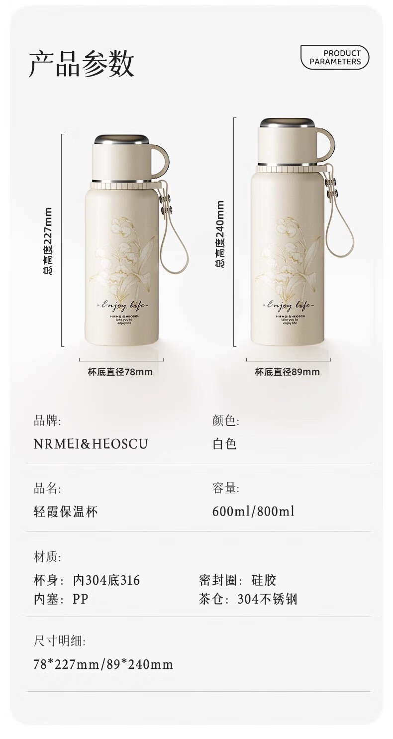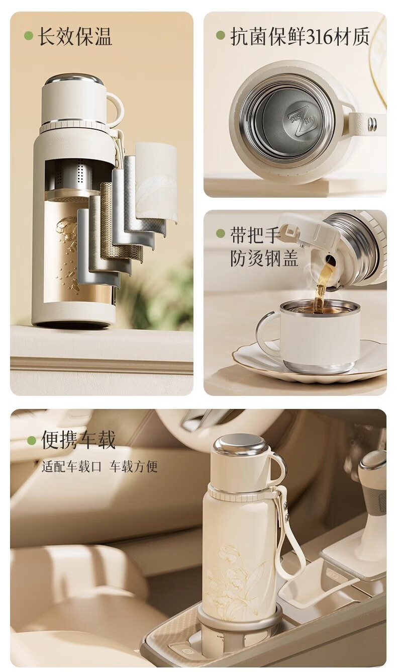 DEATKN德国高端316保温杯女生款高颜值茶水分离大号保温壶大容量男生 铃兰花[智能显温/316不锈 600ml