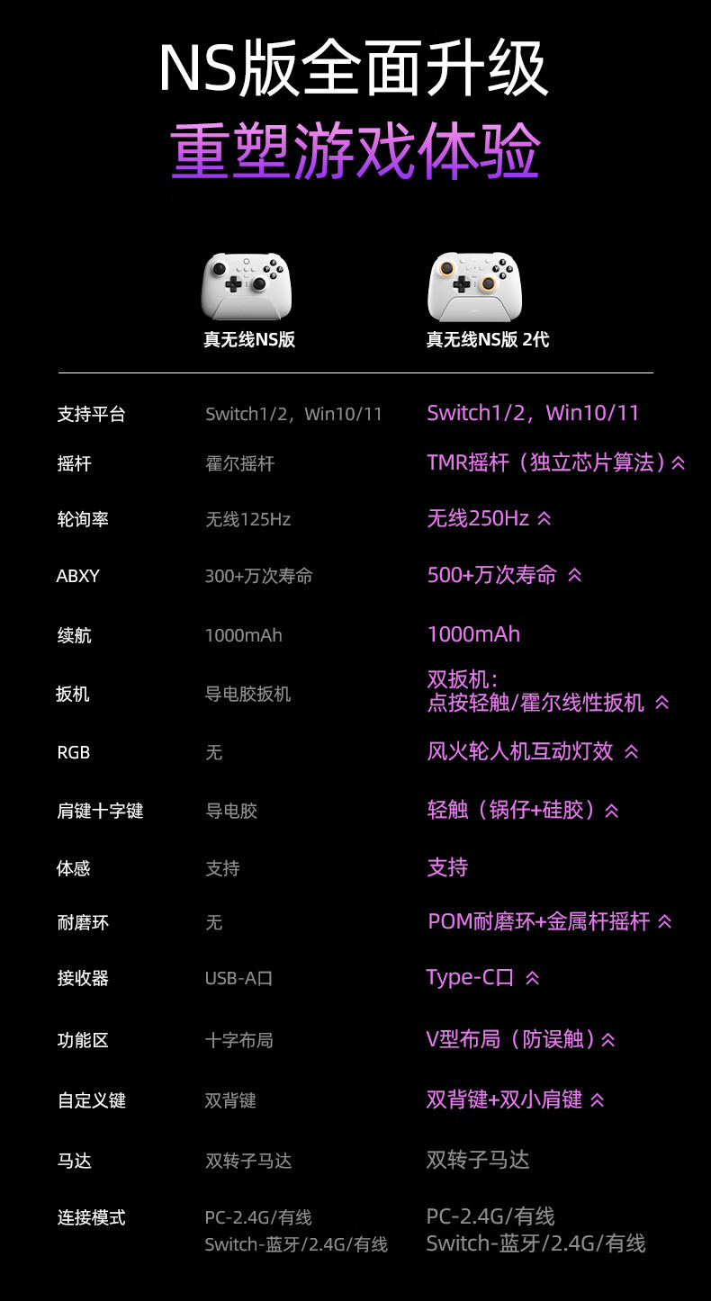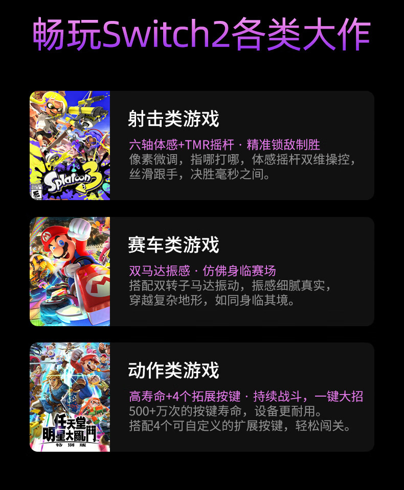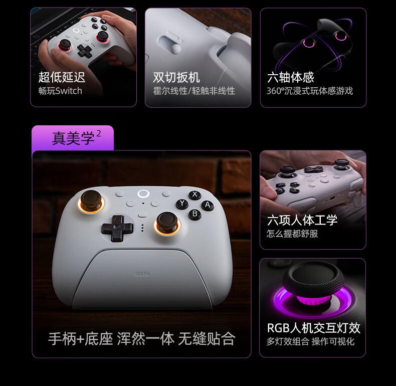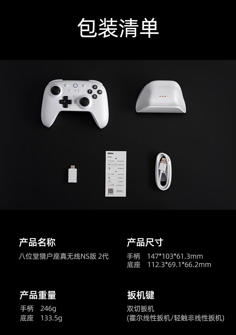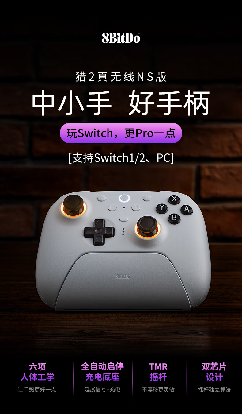 八位堂(8BitDo)猎2真无线NS版游戏手柄Switch2双切扳机ns2 TMR摇杆三模PC电脑Steam塞尔达无双 宝可梦传说 丝之歌