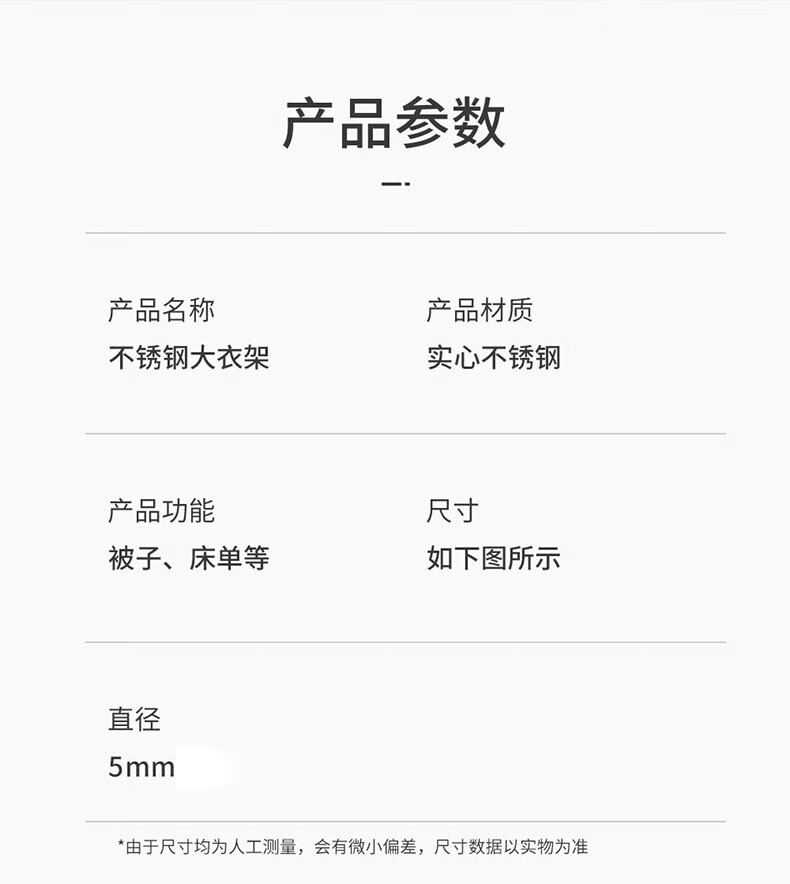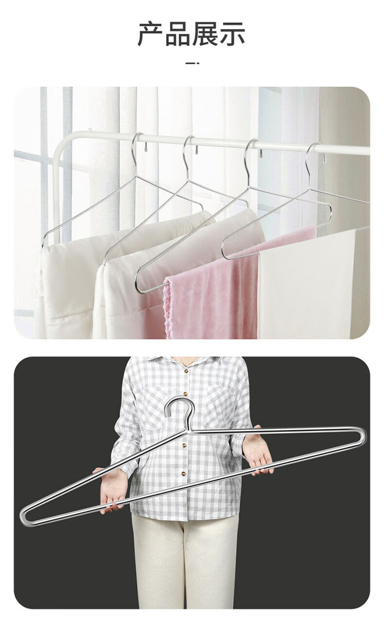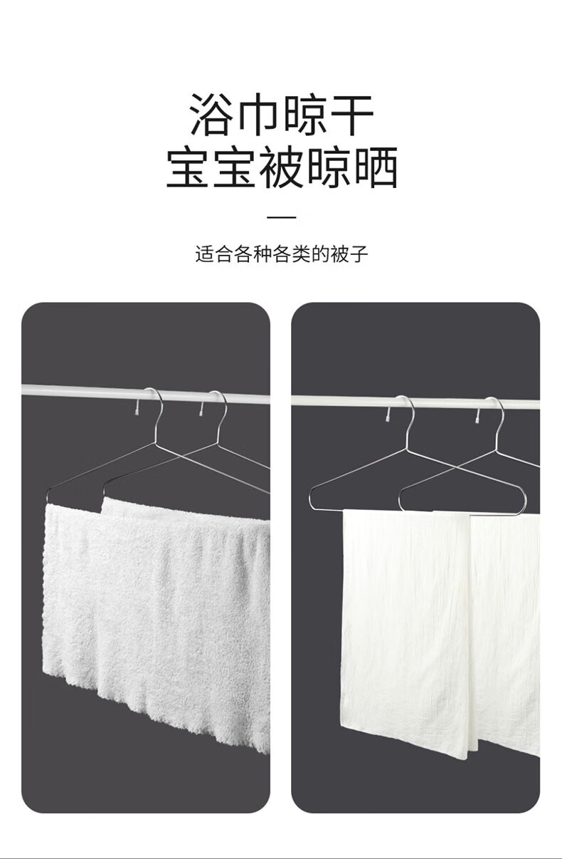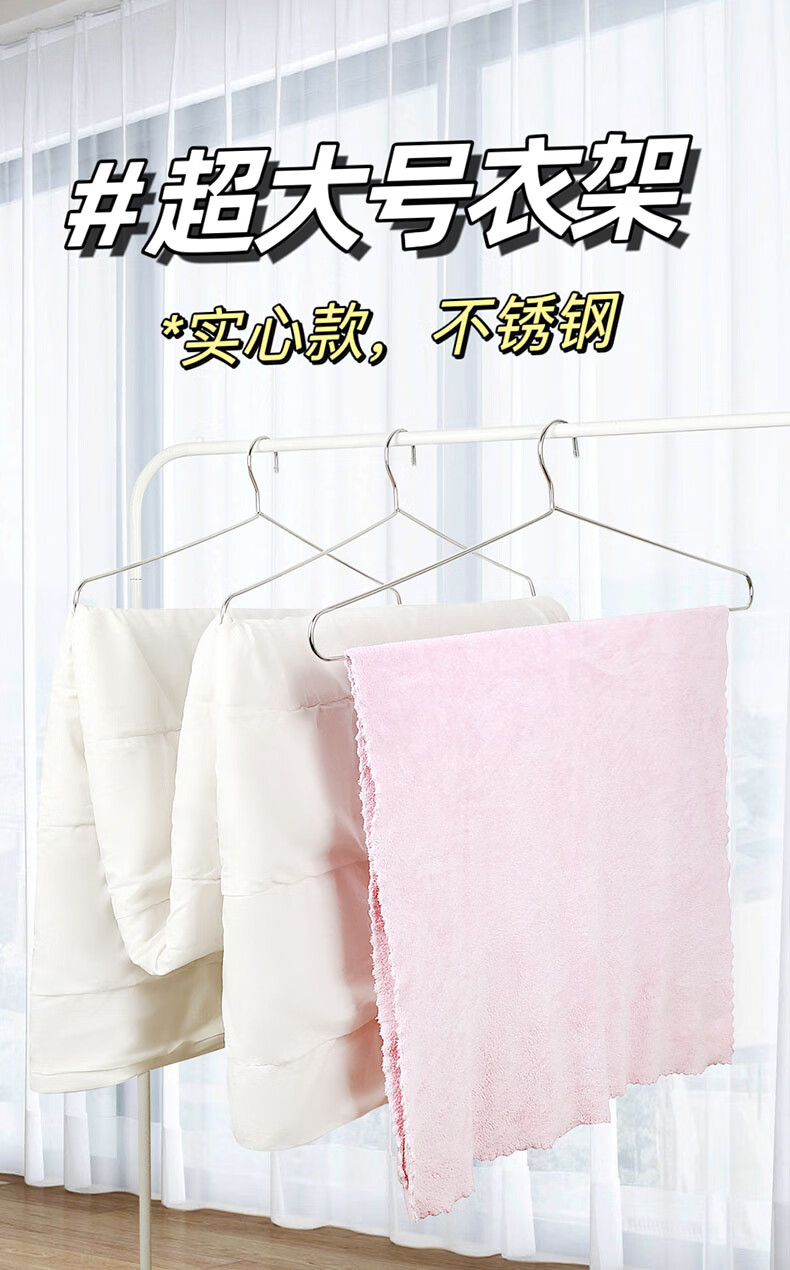 梦庭 不锈钢大衣架晒床单大号加粗晾衣架晾被子浴巾专用长衣架 2个装