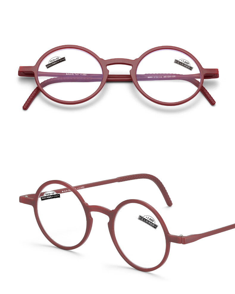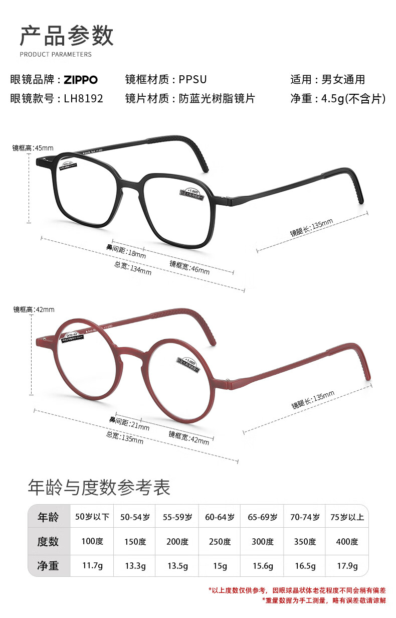 ZIPPO美国超薄折叠便携老花眼镜进口镜片高清防蓝光8192女柔韧红 300度