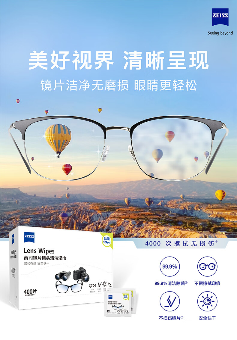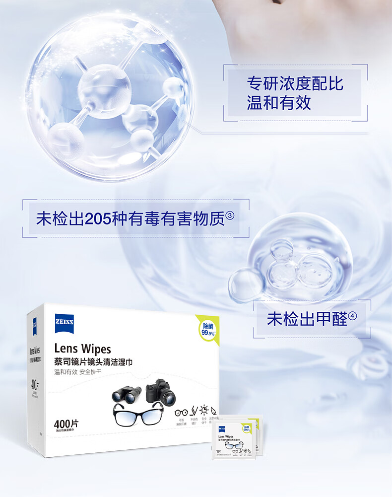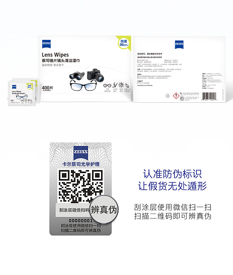 zeiss蔡司擦镜纸 眼镜擦拭湿巾 相机镜头一次性清洁湿巾纸布400片