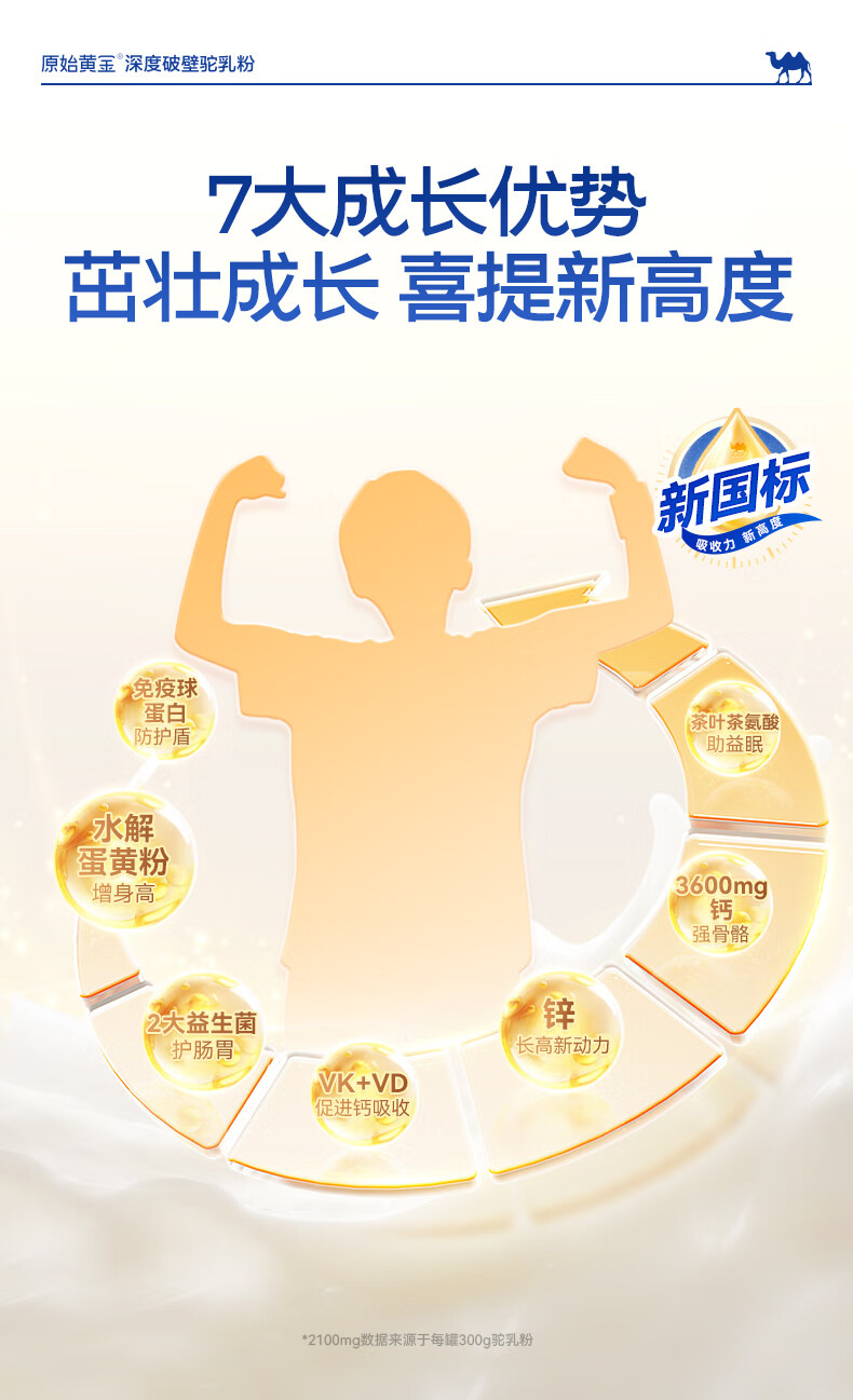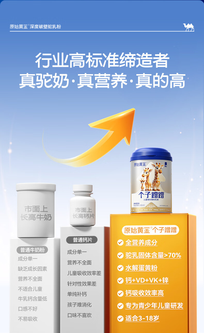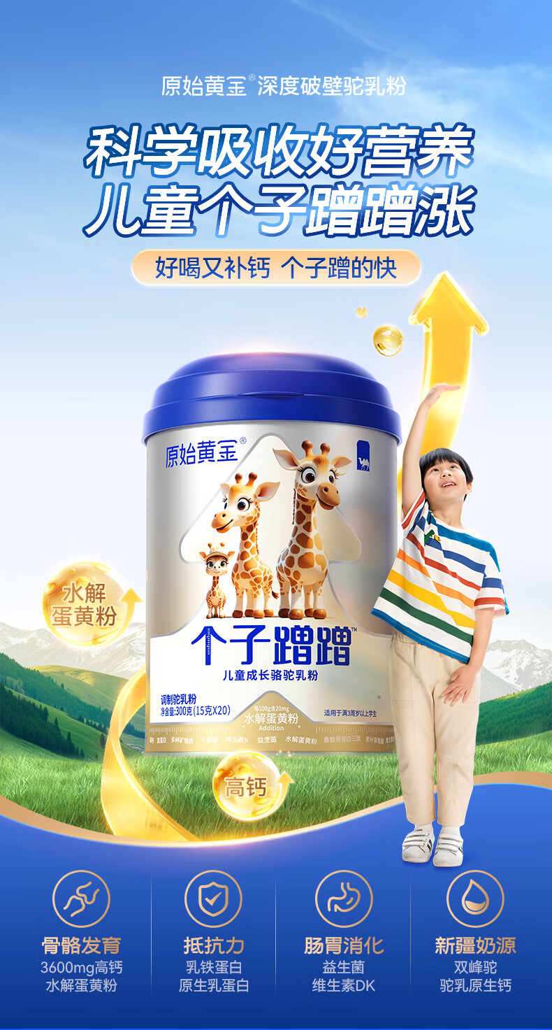 原始黄金儿童成长奶粉 个子蹭蹭 新疆骆驼奶粉乳铁蛋白高钙发育3-15岁300g