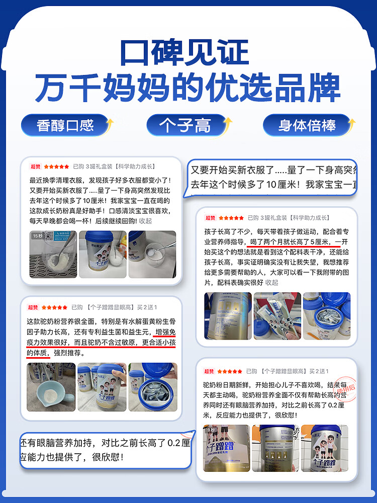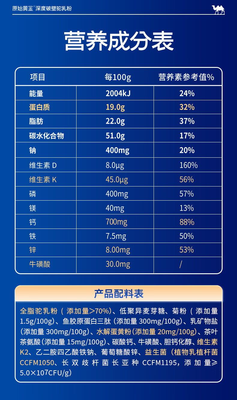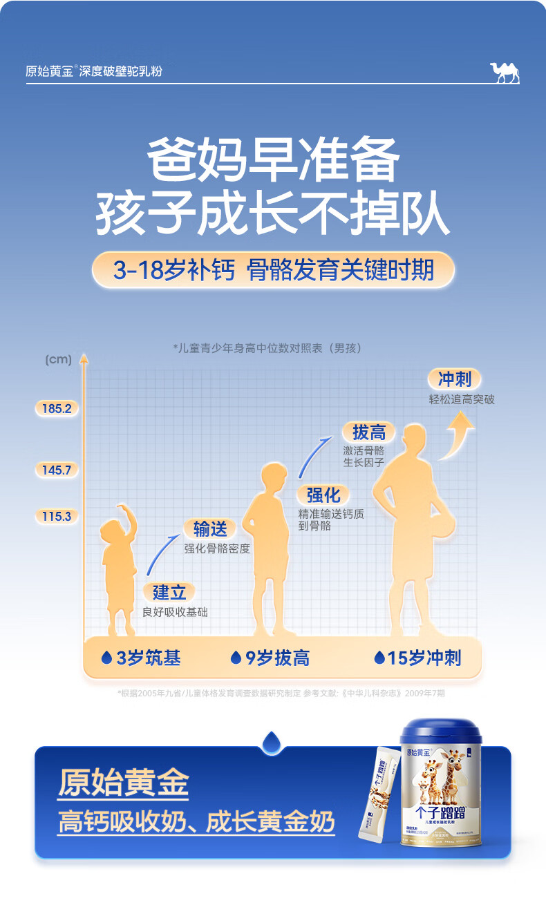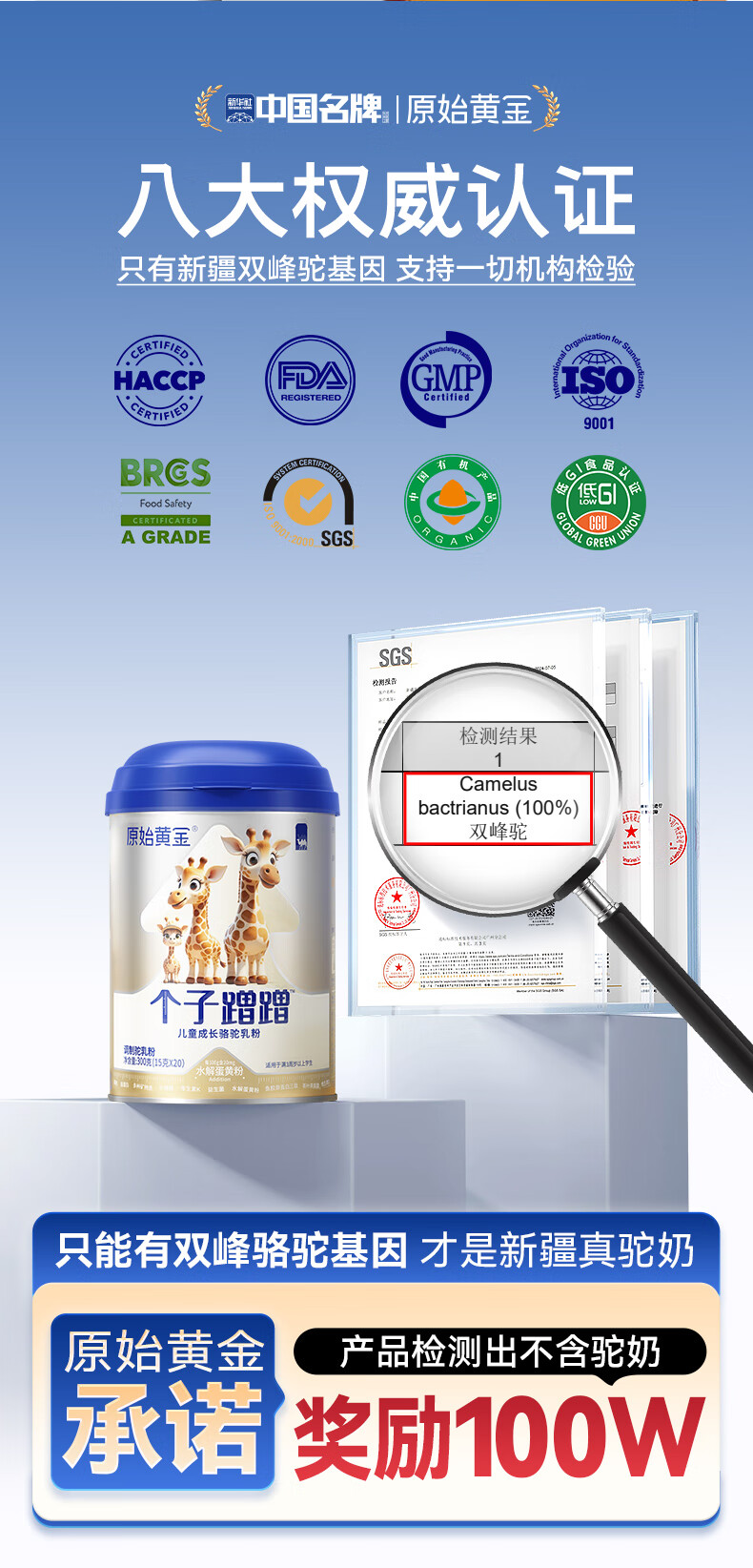 原始黄金儿童成长奶粉 个子蹭蹭 新疆骆驼奶粉乳铁蛋白高钙发育3-15岁300g