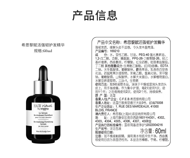 Sisley希思黎【田栩宁推荐】睿秀赋活护发精华60ml钛黑瓶增发头皮育发