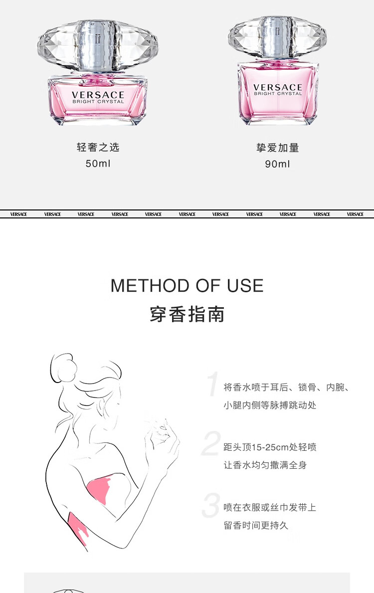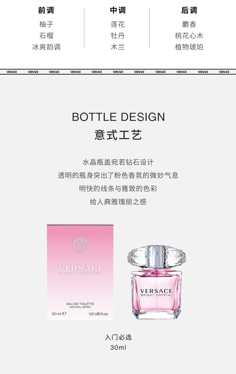 范思哲(VERSACE)粉耀晶钻女士淡香水30ml 节日礼物生日礼物送女友