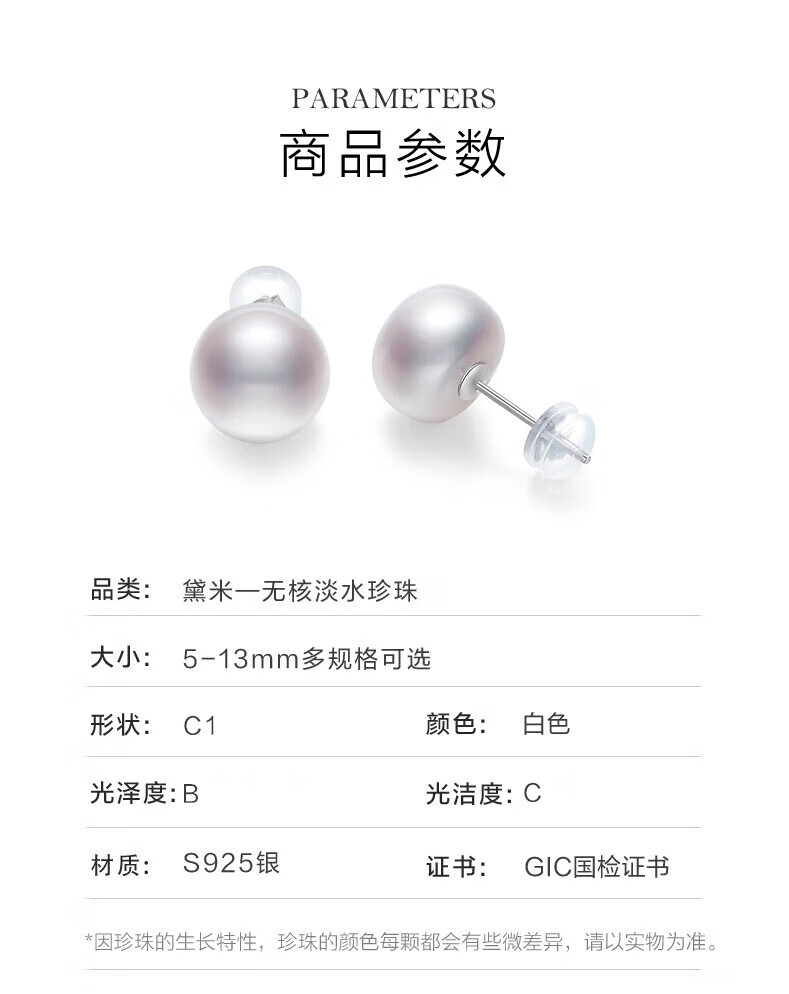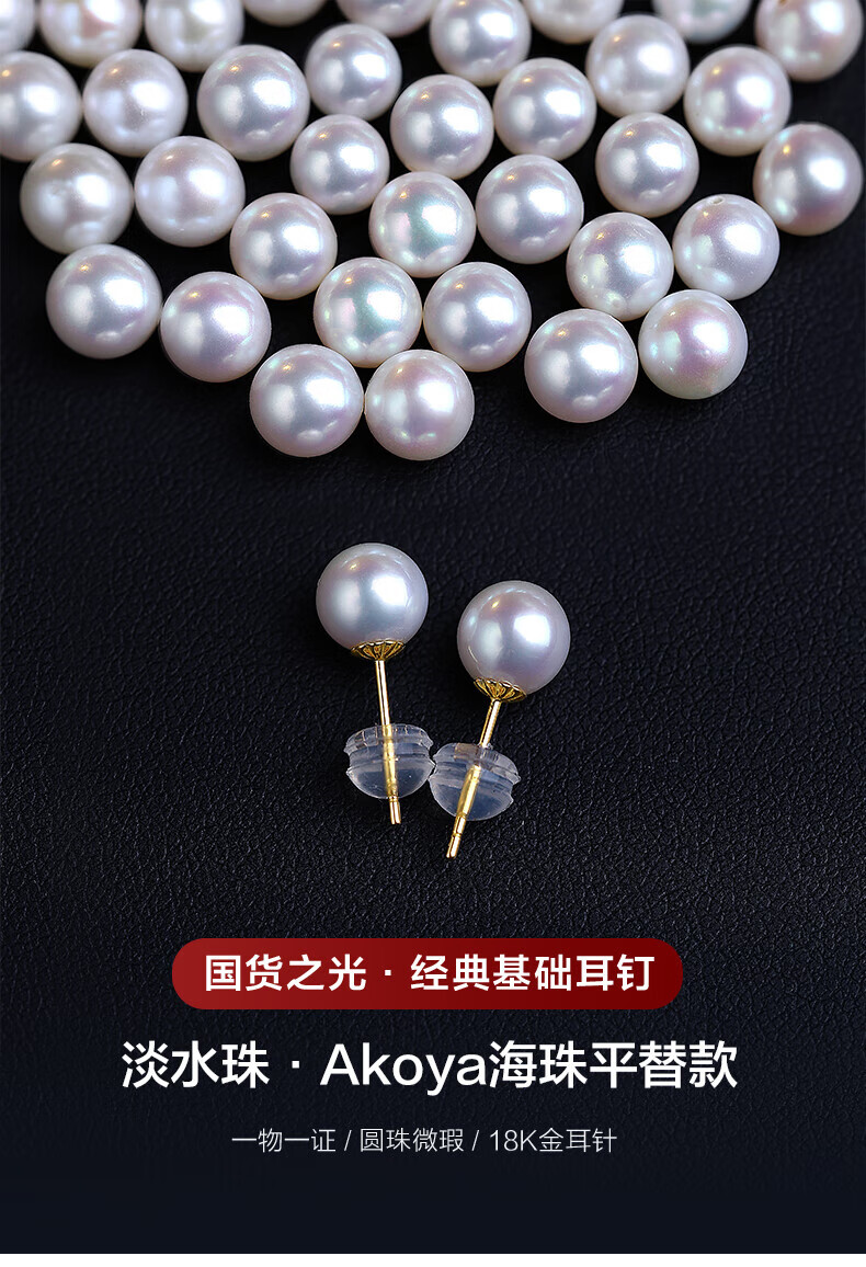 黛米极简系列5-6mm无核淡水珍珠耳钉S925银送女友生日礼物