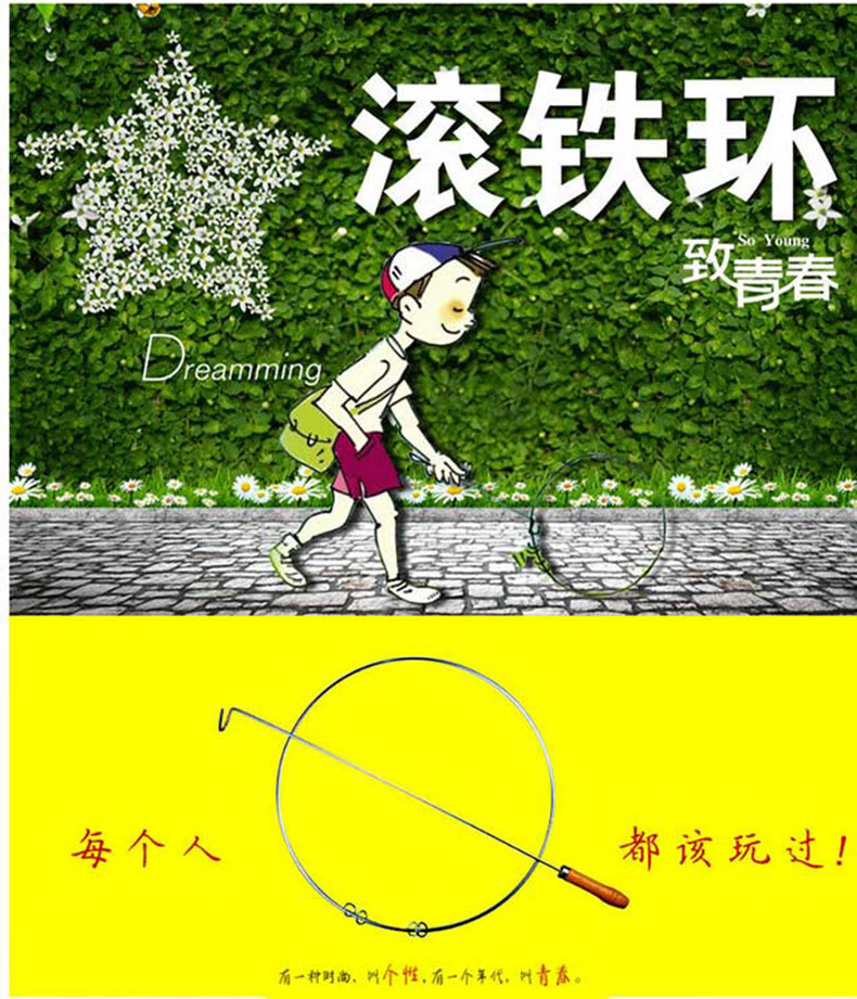 玩转天下 推铁环滚铁圈80-70后滚铁环怀旧玩具儿童小学生幼儿园加粗实心圆环