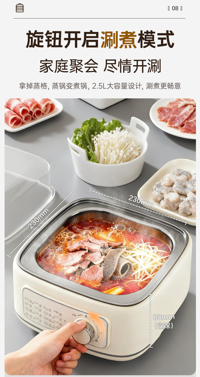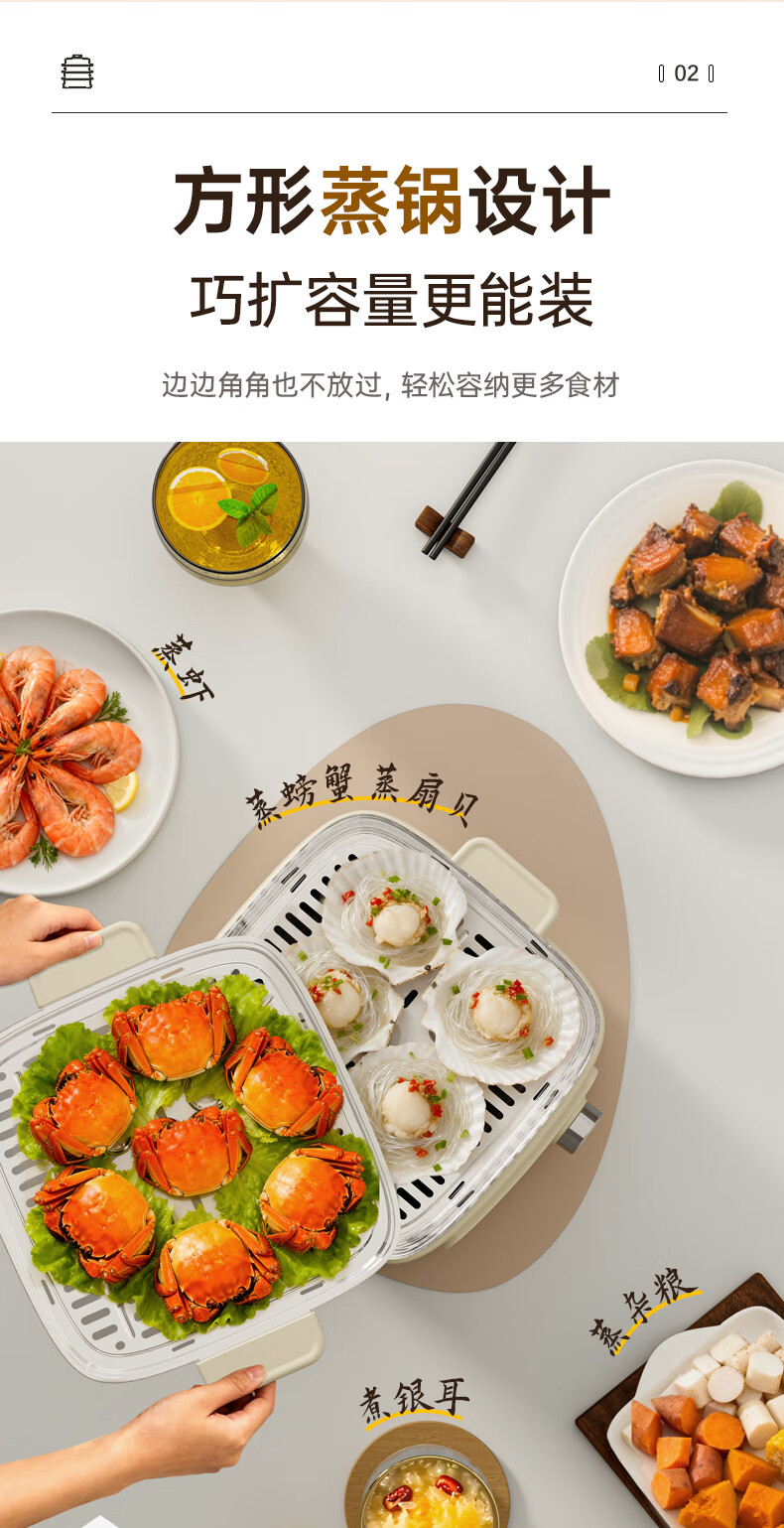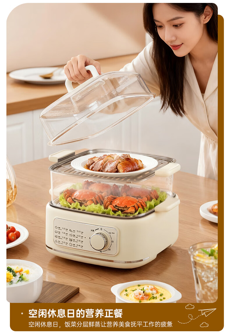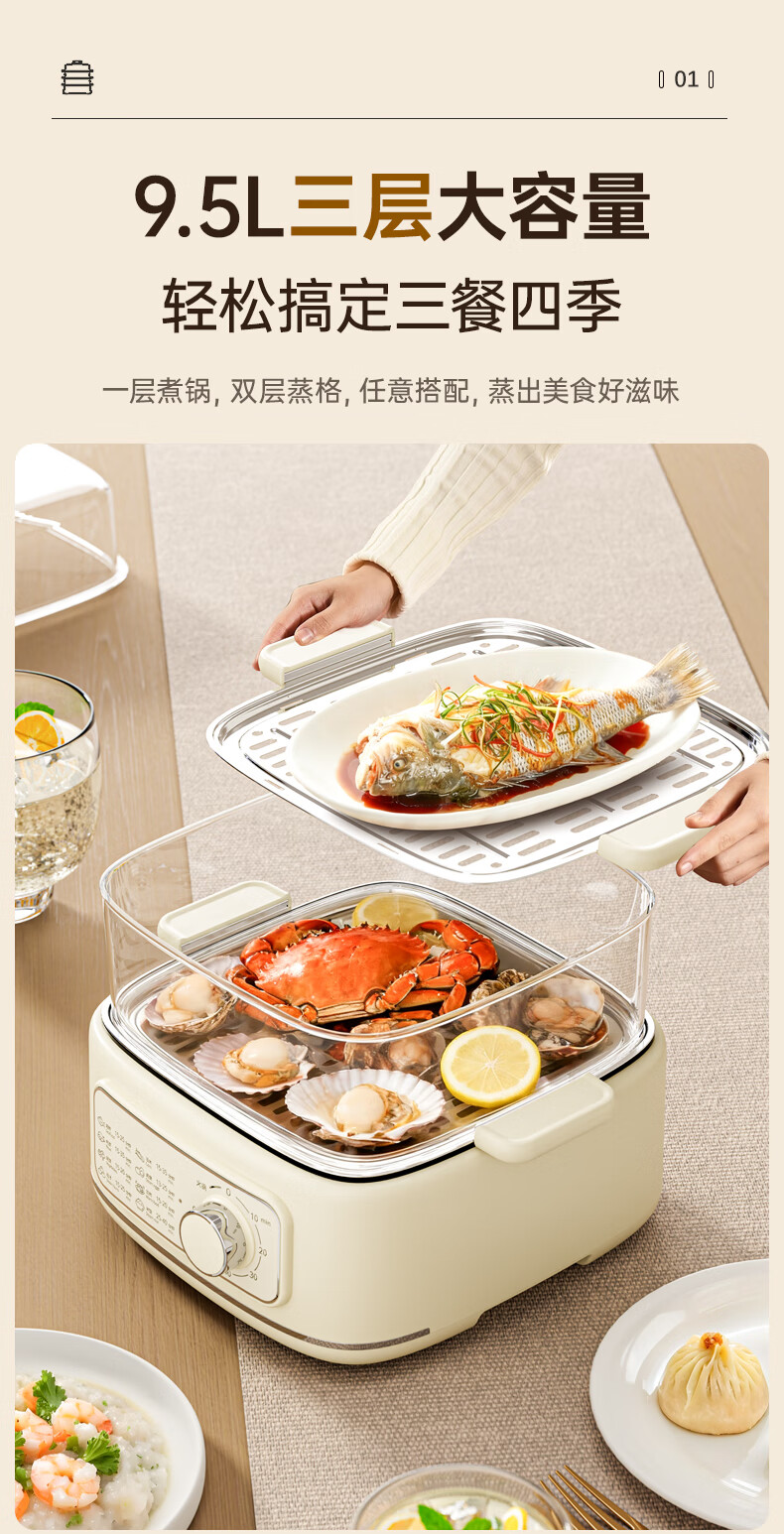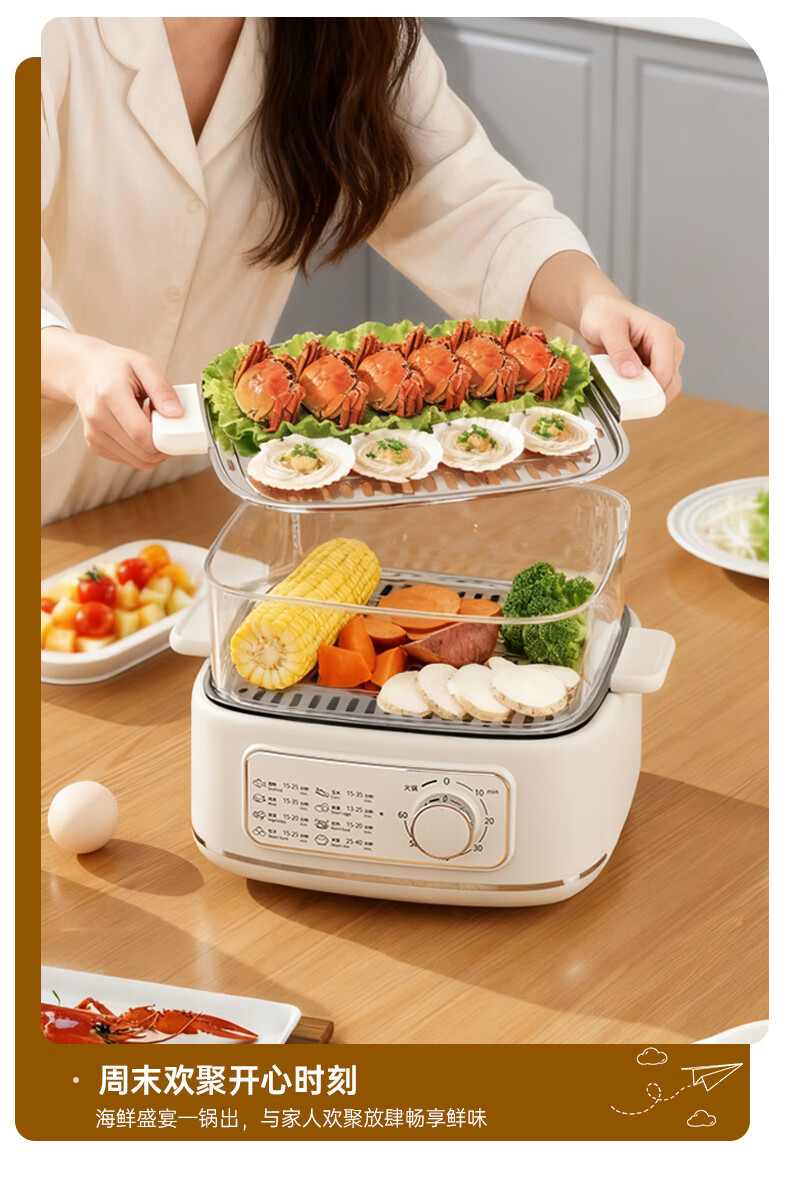 奥克斯(AUX)电蒸锅炖蒸煮一体多功能锅小型 电煮锅1-2-3人用一锅多用 电热锅 电大火力锅 电热锅 9.5L