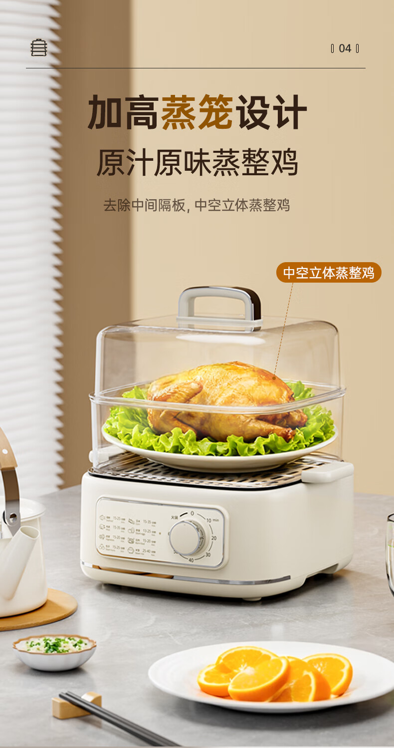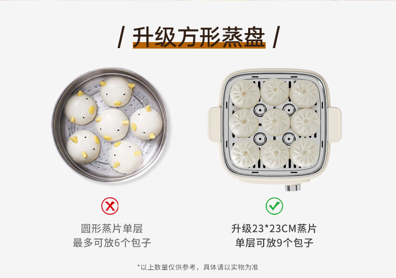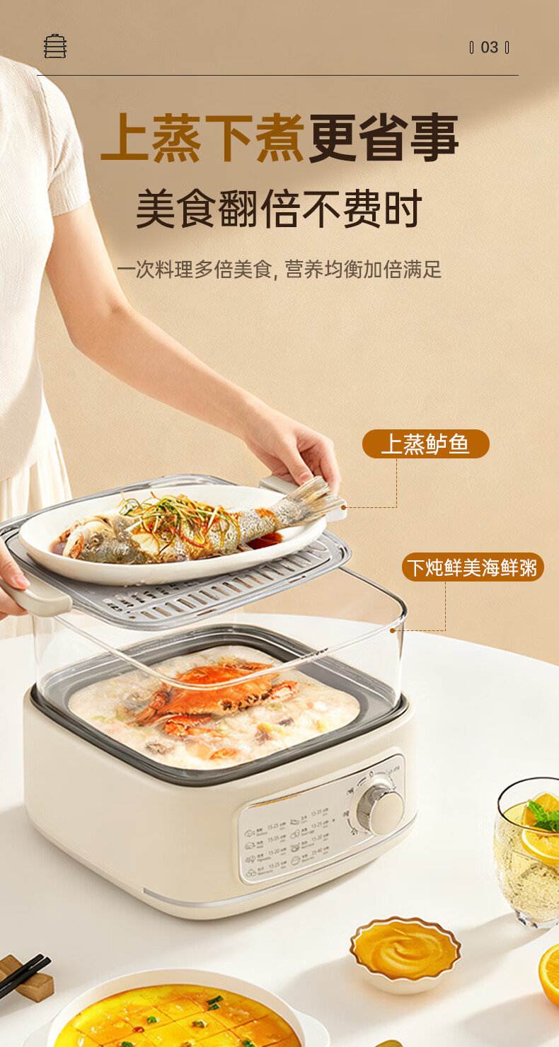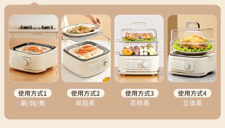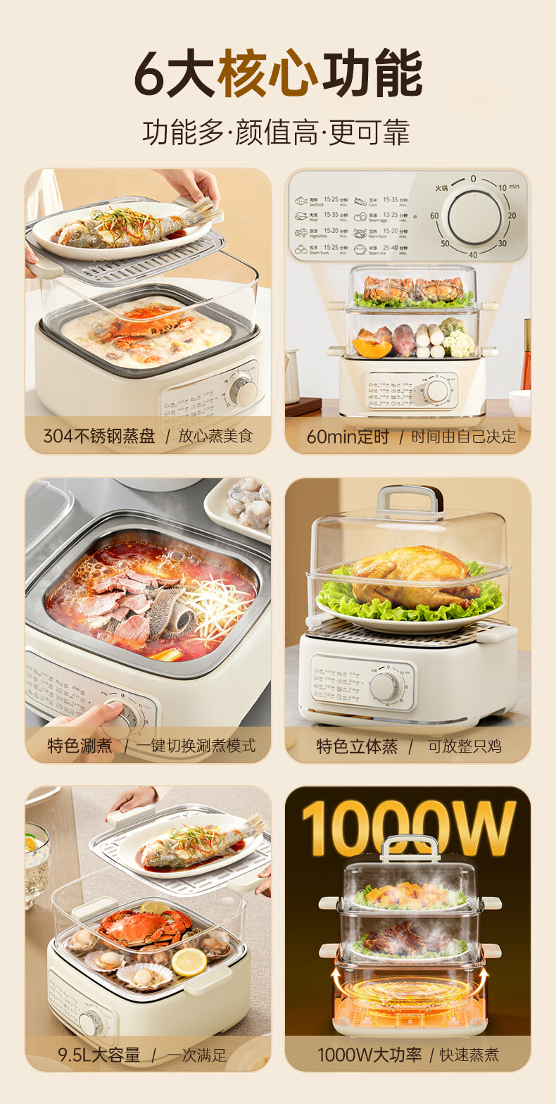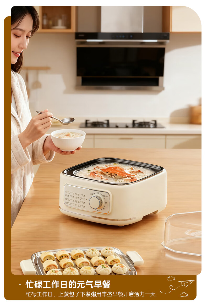 奥克斯(AUX)电蒸锅炖蒸煮一体多功能锅小型 电煮锅1-2-3人用一锅多用 电热锅 电大火力锅 电热锅 9.5L