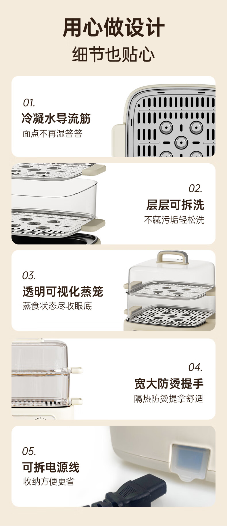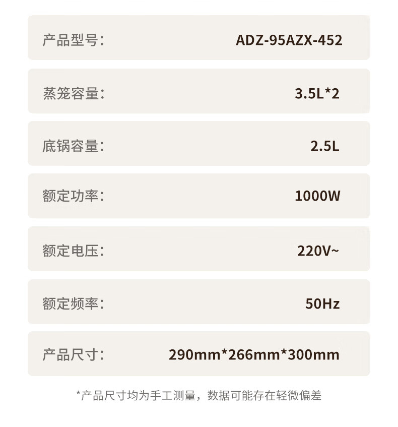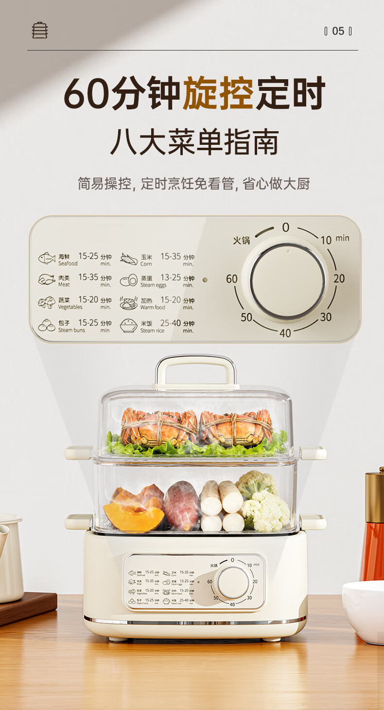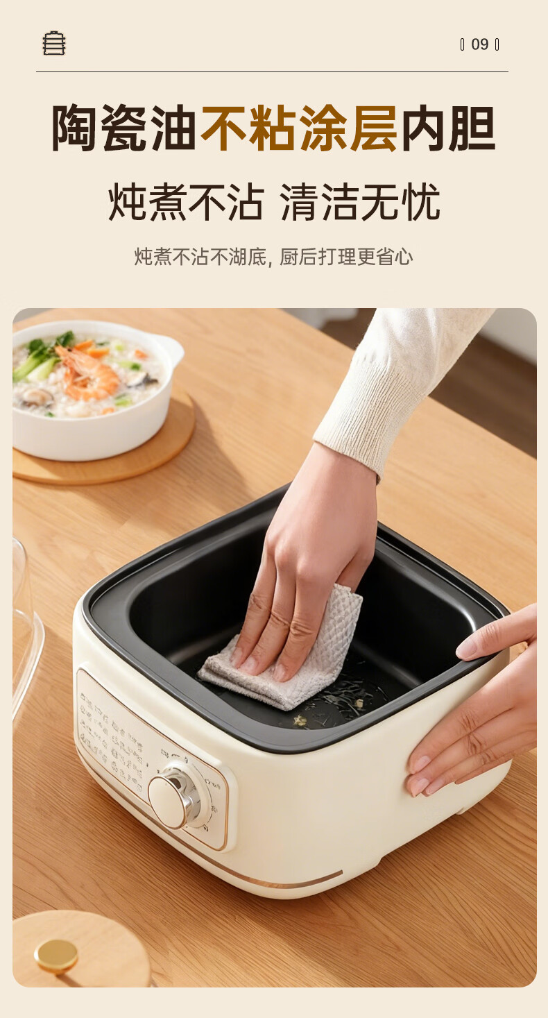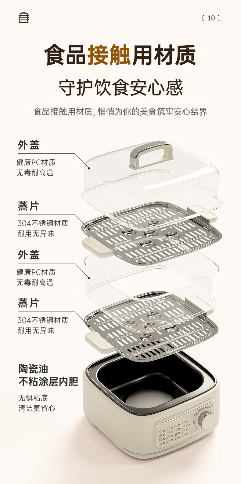 奥克斯(AUX)电蒸锅炖蒸煮一体多功能锅小型 电煮锅1-2-3人用一锅多用 电热锅 电大火力锅 电热锅 9.5L
