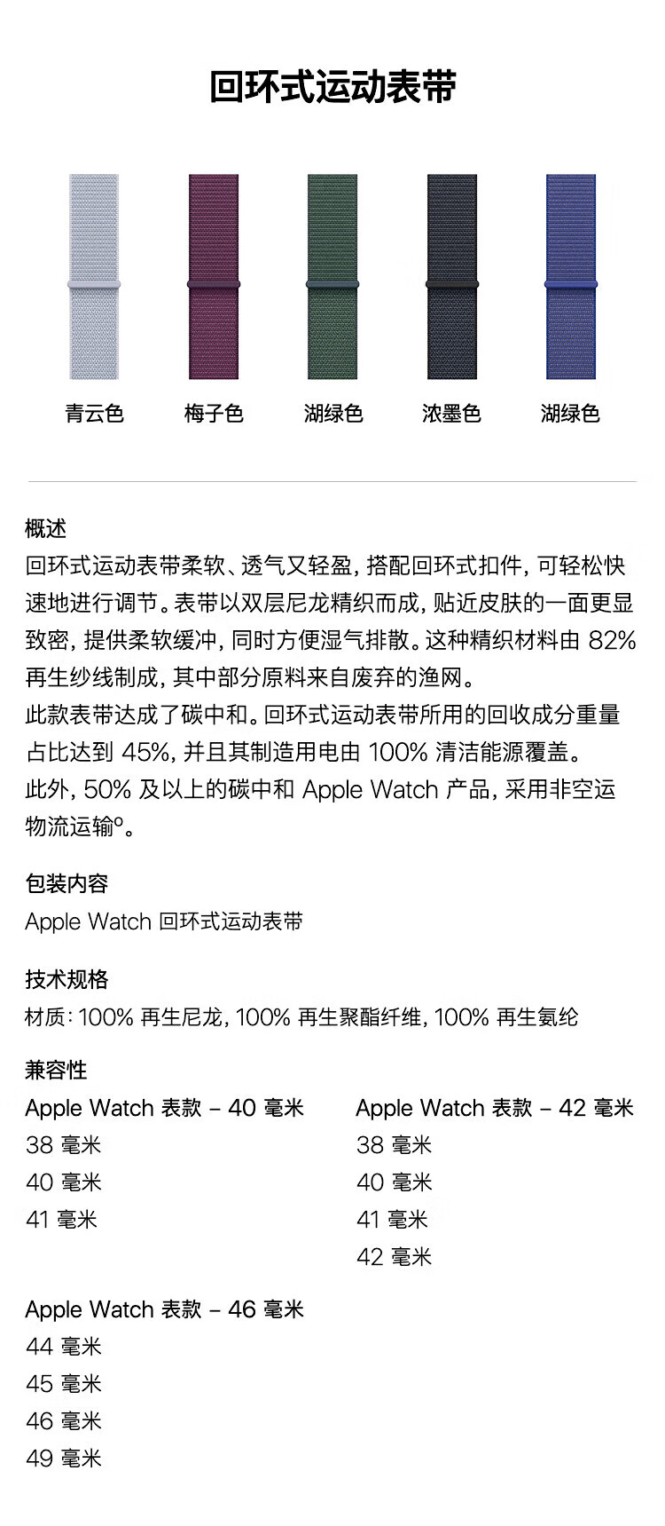 Apple/苹果 46毫米 群青色回环式运动表带 适用46毫米的S11/10 苹果表带