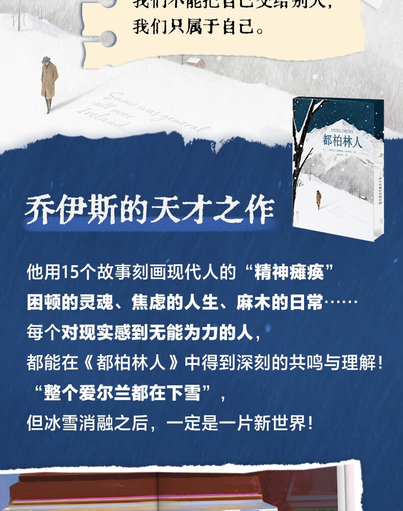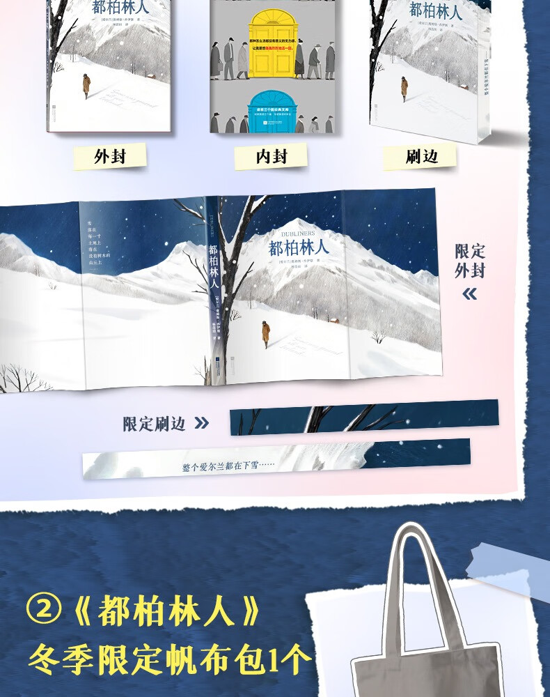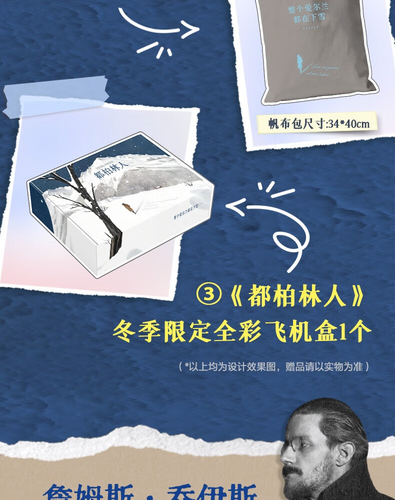 【冬季礼盒】都柏林人 双封刷边+帆布包 西方文学史上zui著名的雪 全彩飞机盒 赠文学手册 乔伊斯天才之作! 都柏林人冬季限定礼盒