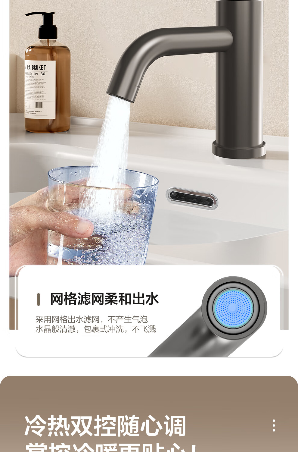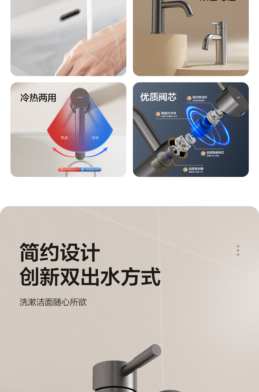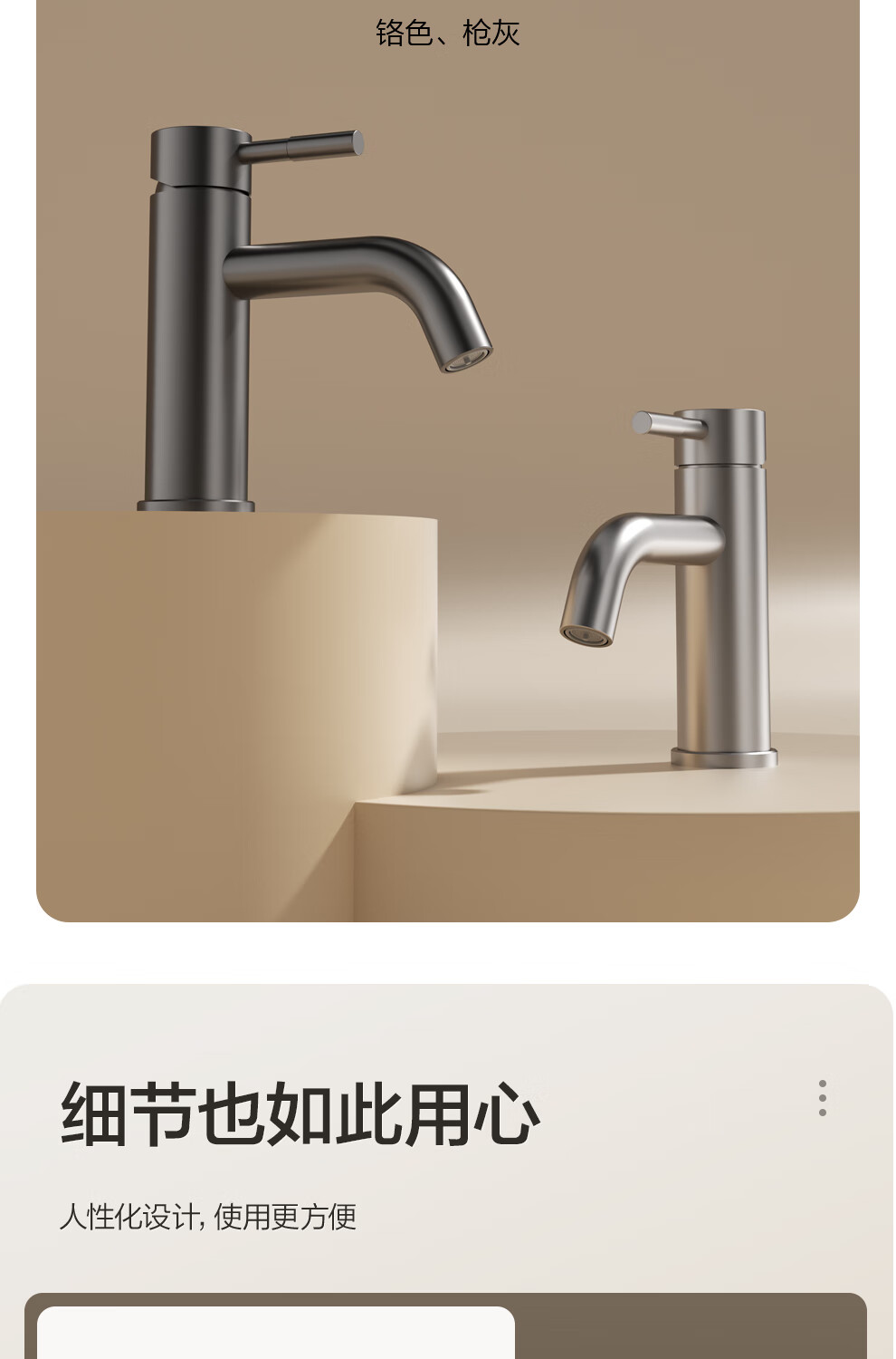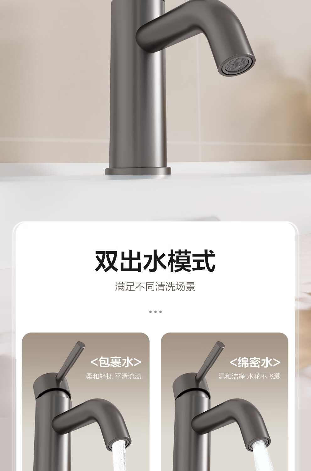 hawen【德国】水龙头洗手盆面盆浴室柜卫生间洗脸盆水龙头冷热水二合一 【轻银】精铜主体丨黄金夹角设计 送80cm冷热管丨现代简约纯净