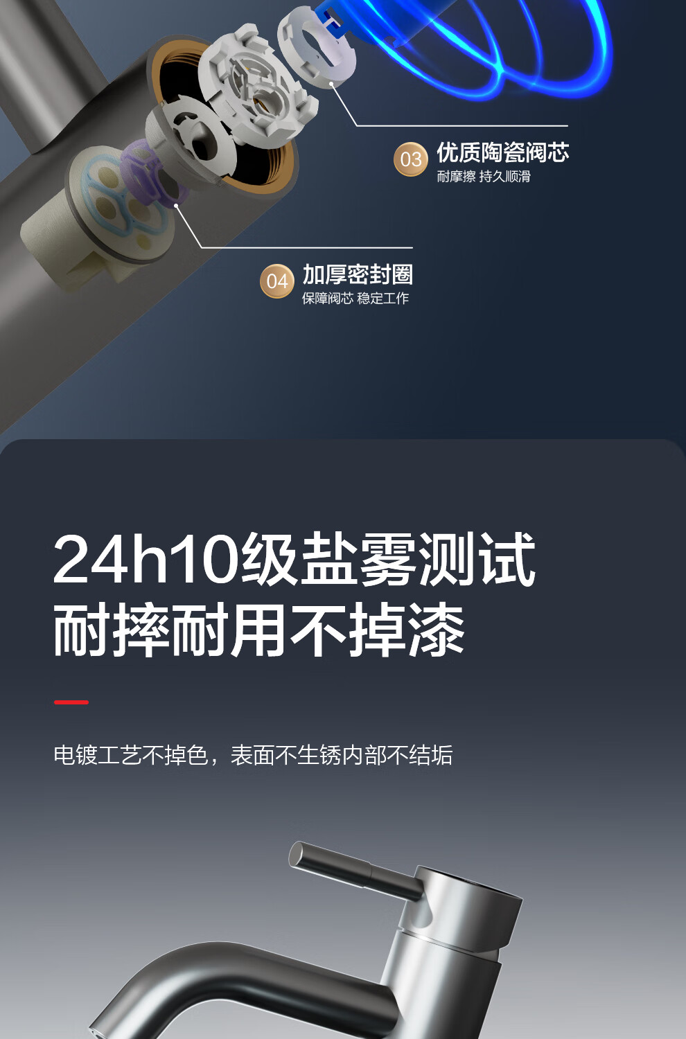 Rosecret【德国】面盆水龙头高抛304不锈钢冷热厨房水槽脸盆万向旋转龙头 304不锈钢卫生间水龙头【奶白色】家用面盆脸盆通用 双温增压防溅丨80cm冷热进水管*2