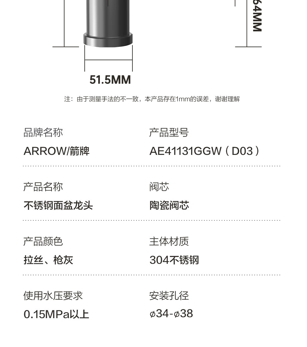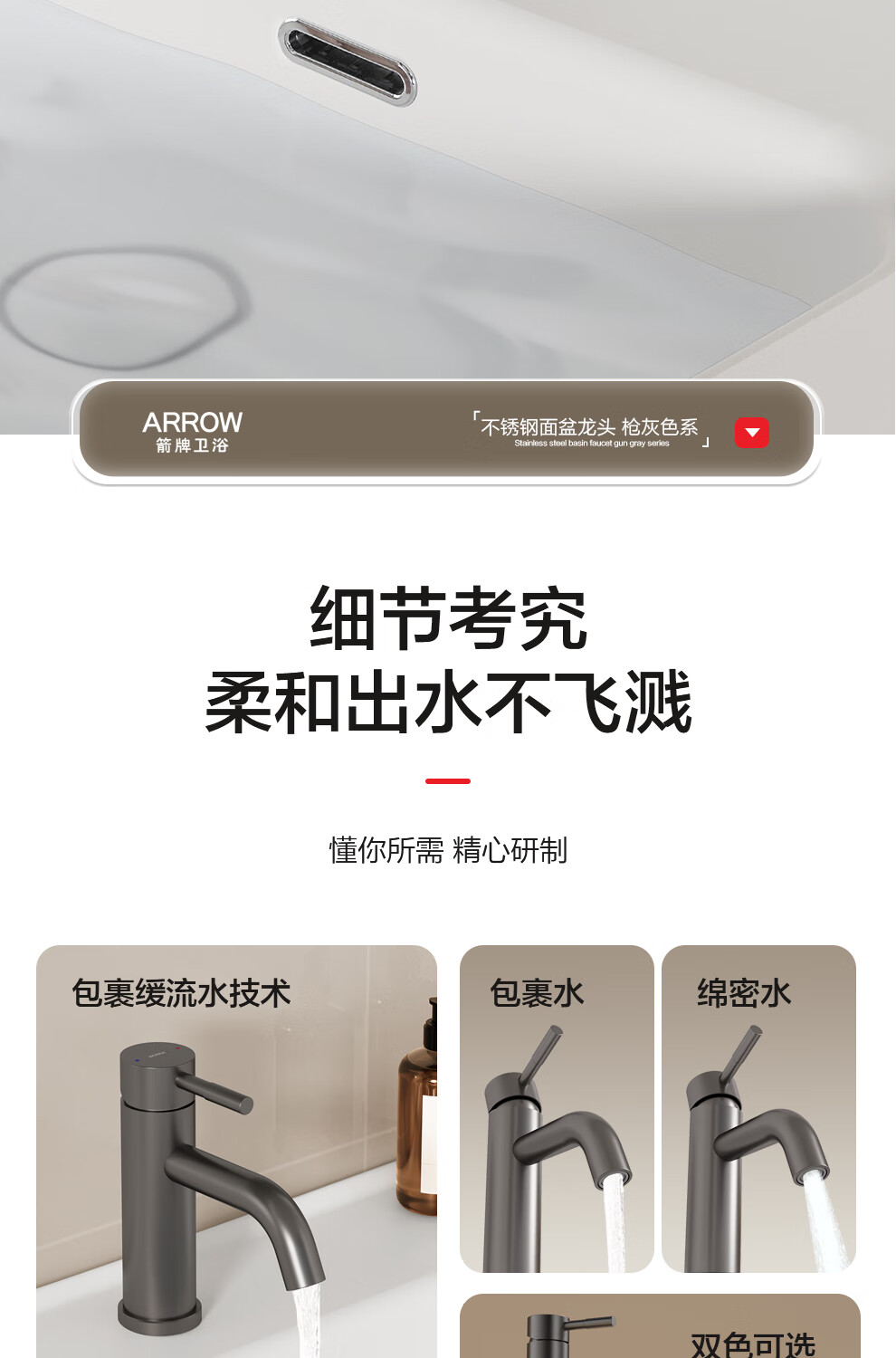箭牌(ARROW)龙头套装下水器下水软管红蓝角阀组合龙头配件套餐冷热水龙头 AE41131龙头配件套餐 银色