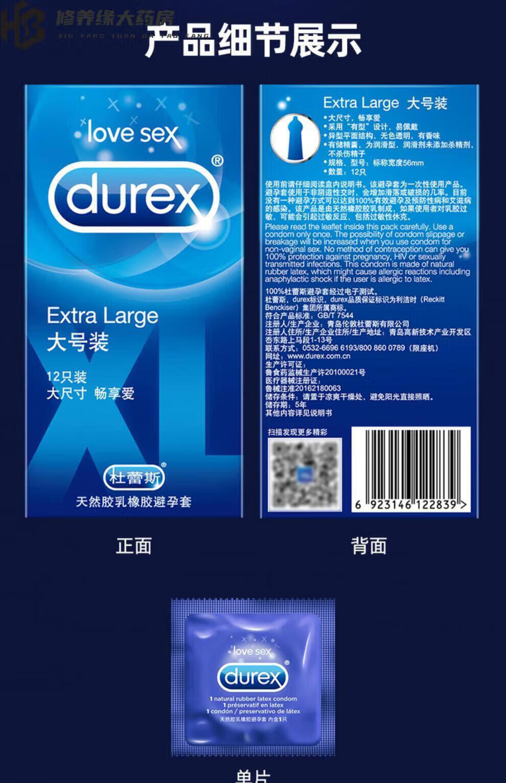 杜蕾斯(durex)【药房】xxl大号套54型55套男56mm58加大码 光面大号共12大号装 光面大号共12大号装