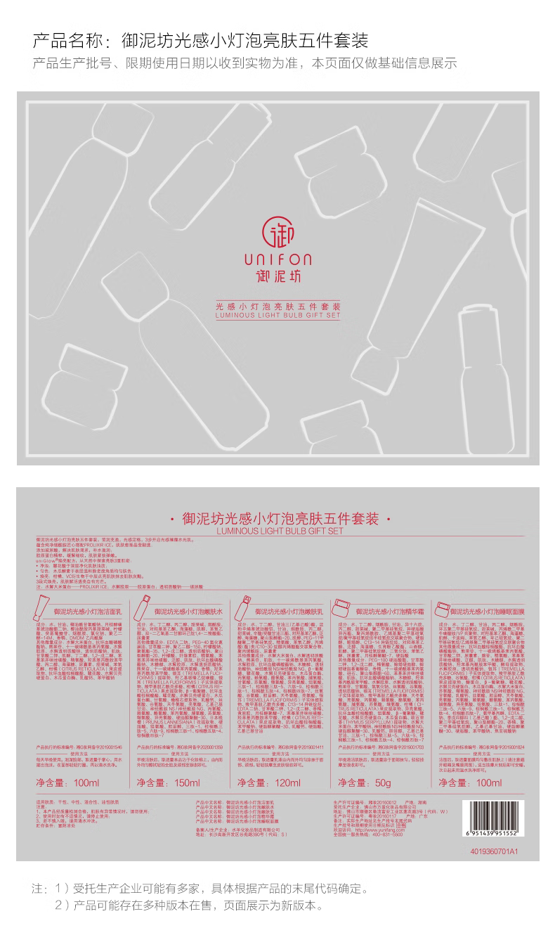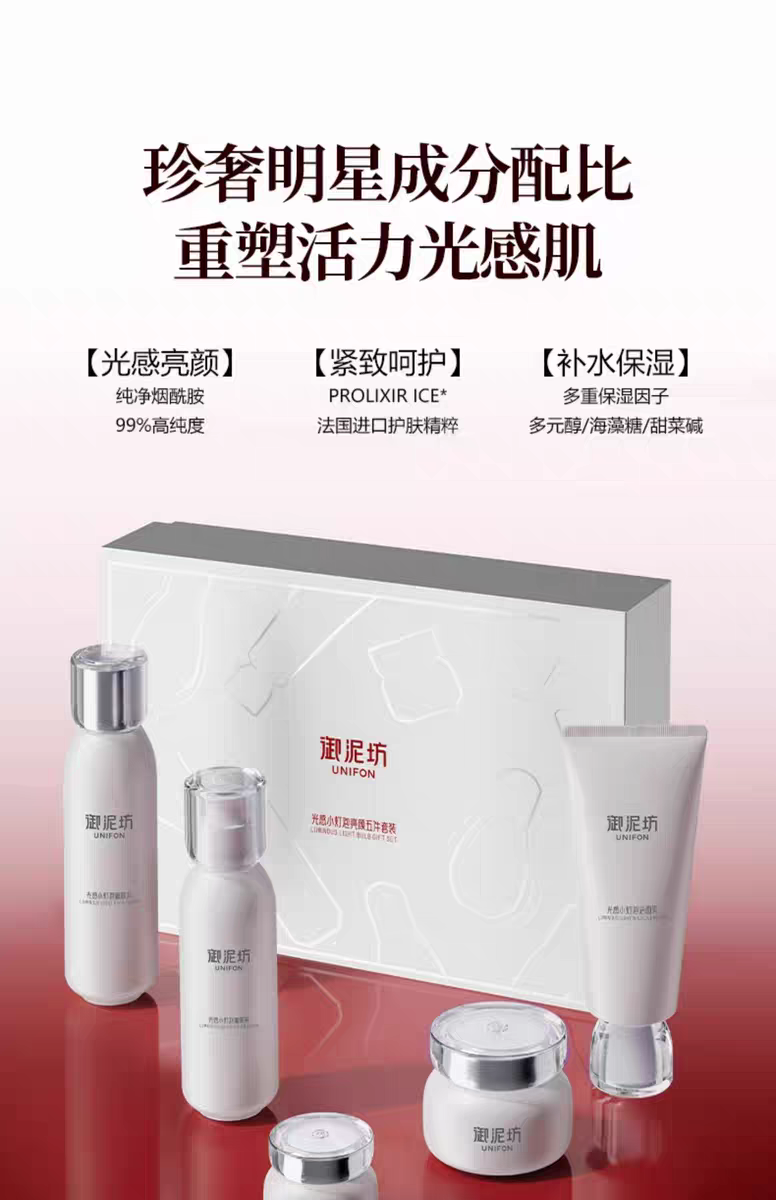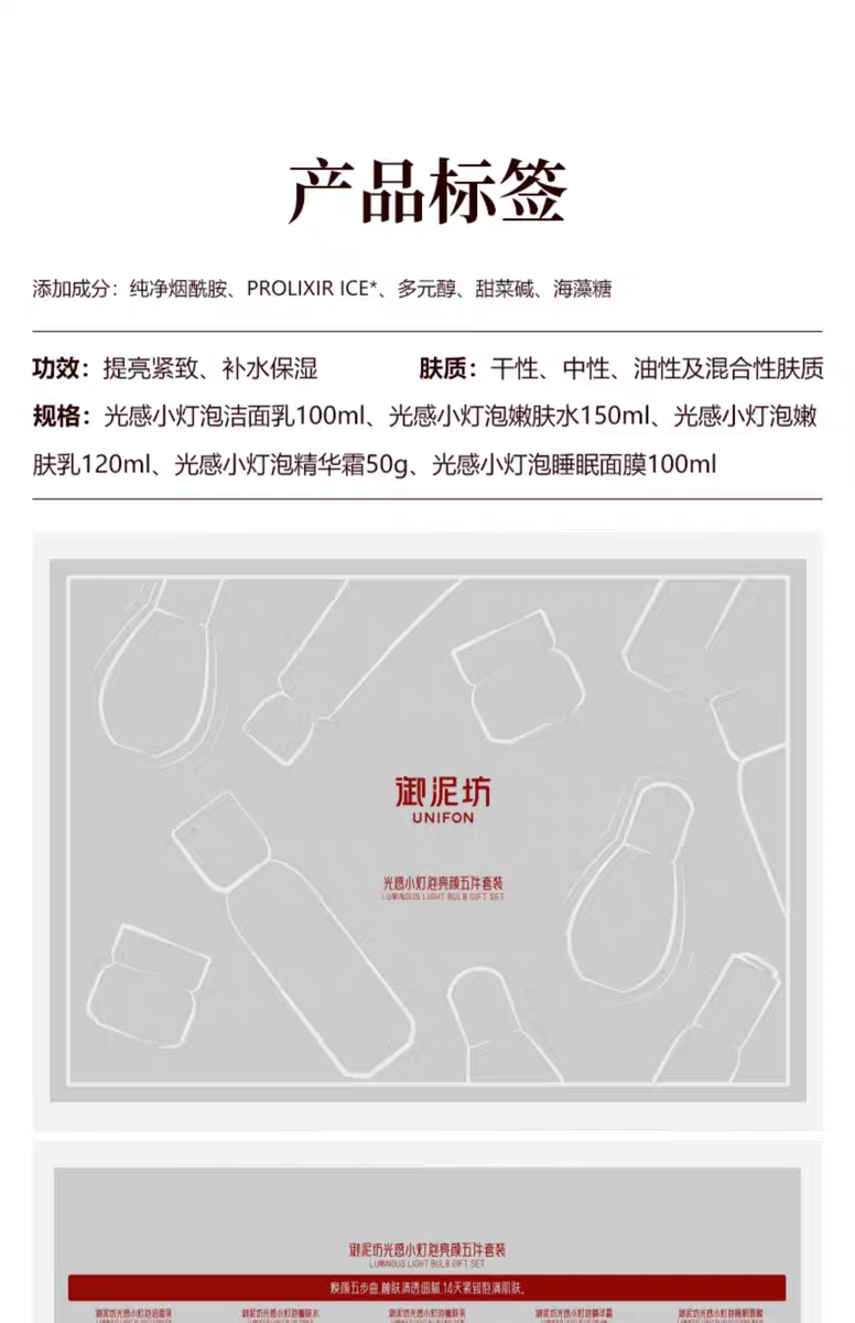 御泥坊光感小灯泡水乳护肤套装礼盒提拉紧致提亮肤色补水保湿教师节礼物 小灯泡5件套+红石榴5件套