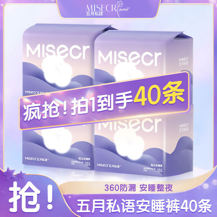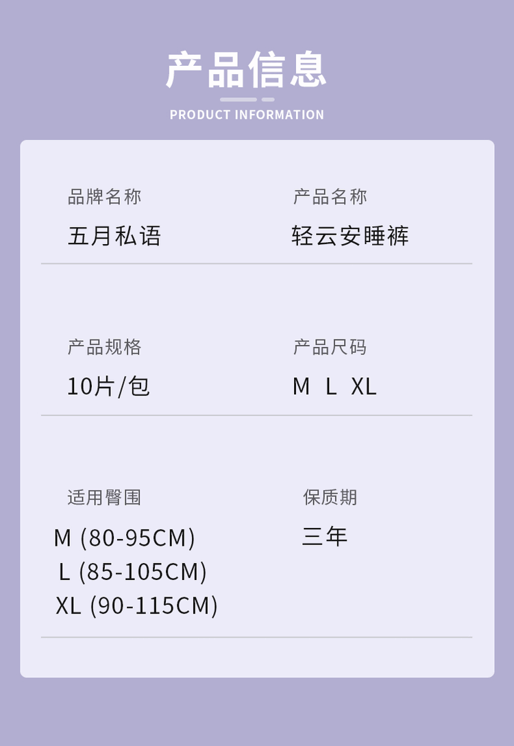 AILUKI五月私语安睡裤大码夜用防漏超薄透气裤型卫生巾学生姨妈巾 安睡裤*10片【新人尝鲜价】 M码:建议【80-110斤】