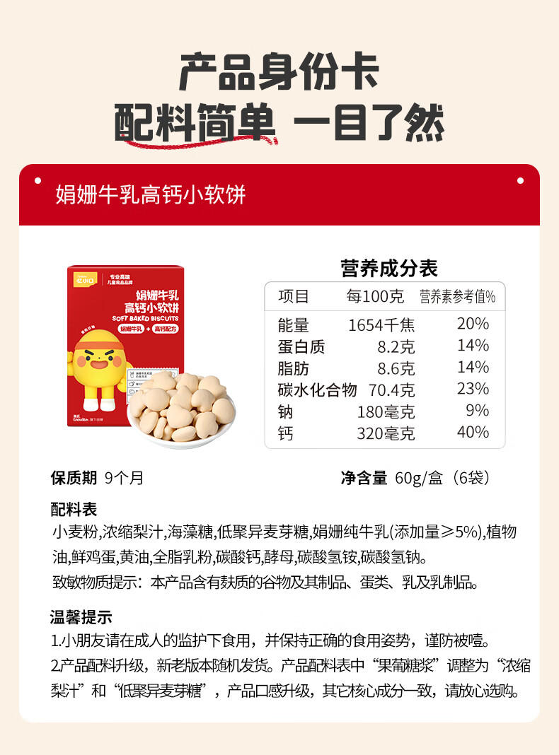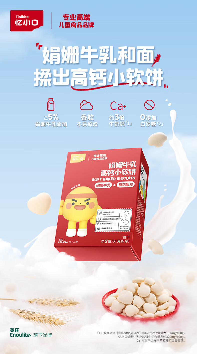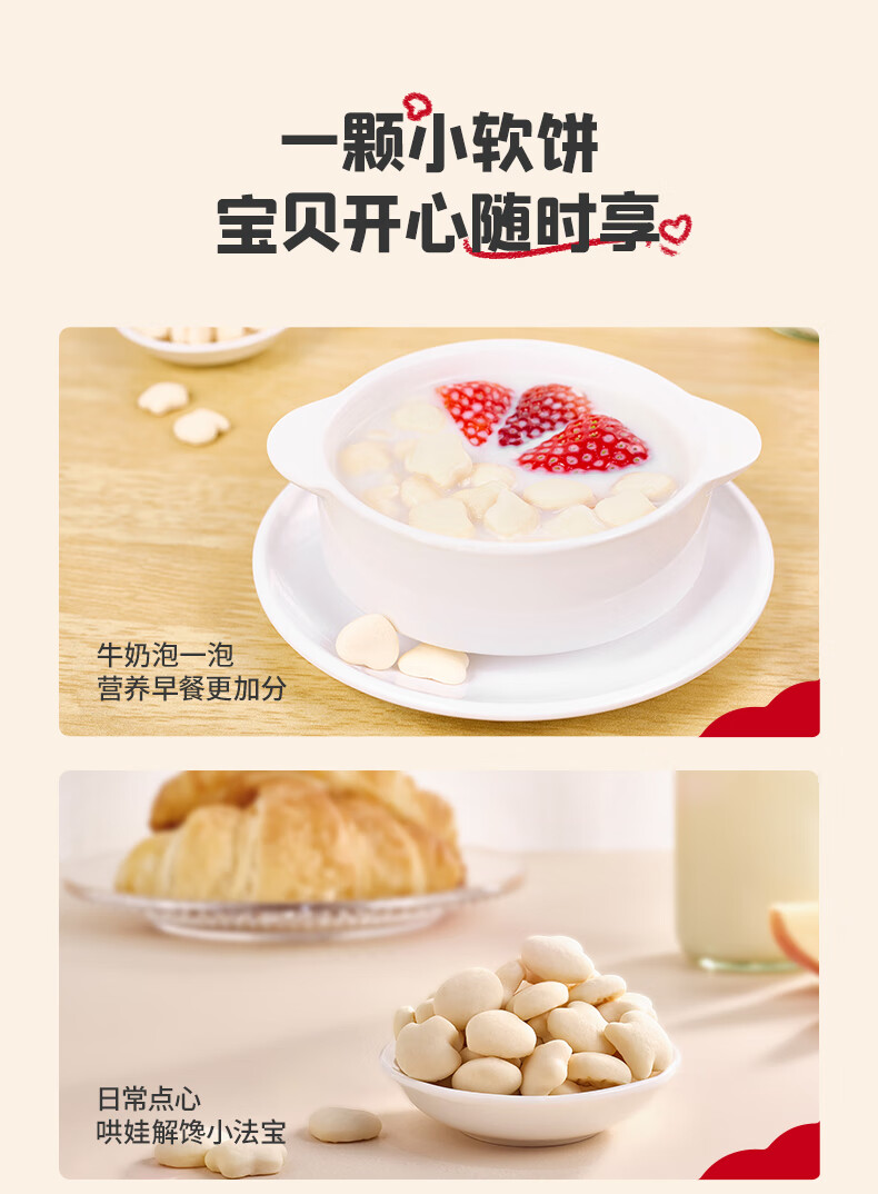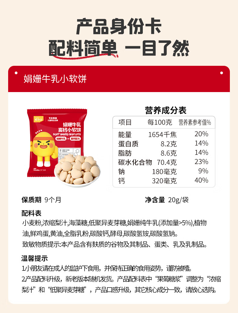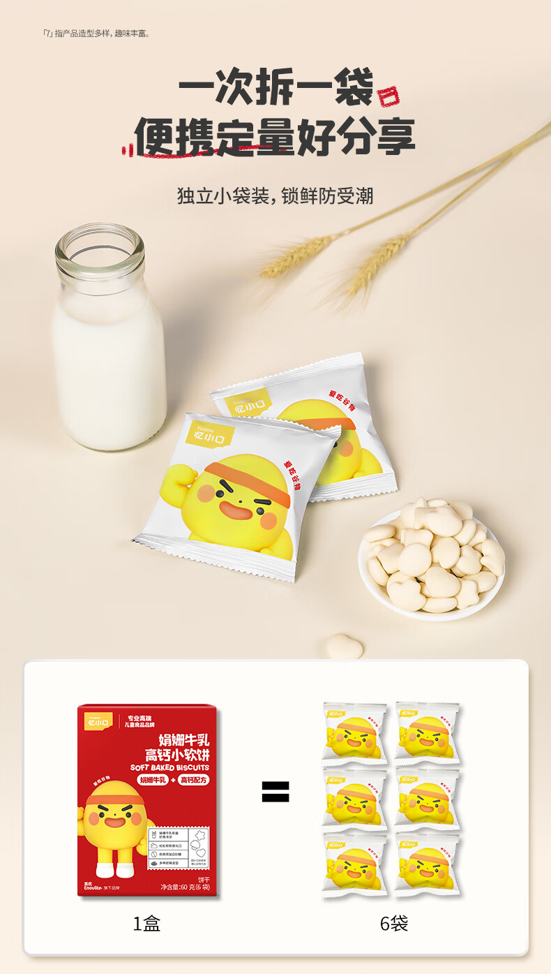 英氏(Engnice)忆小口儿童零食娟姗牛乳小软饼 高钙配方0添加白砂糖独立包装 【0添加白砂糖】5盒