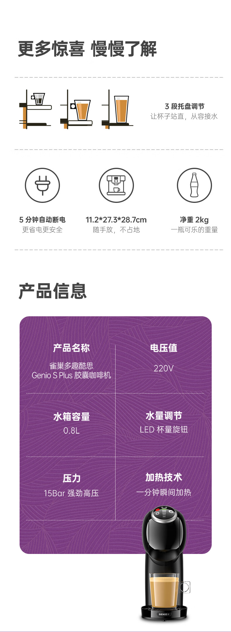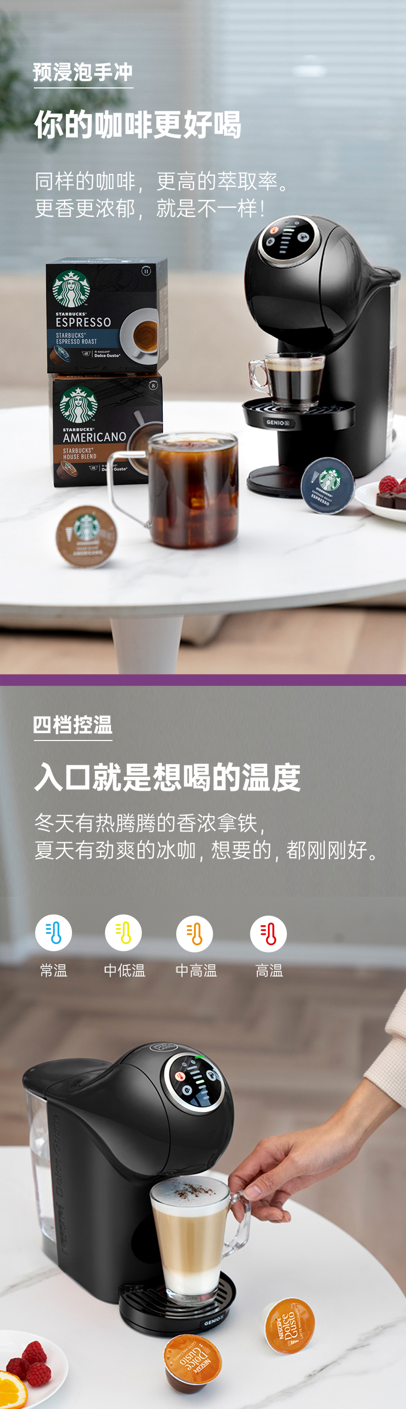 DOLCE GUSTO 雀巢多趣酷思 胶囊咖啡机 Genio S Plus小精灵黑单机 全自动升级款 新增预浸泡功能 4档控温