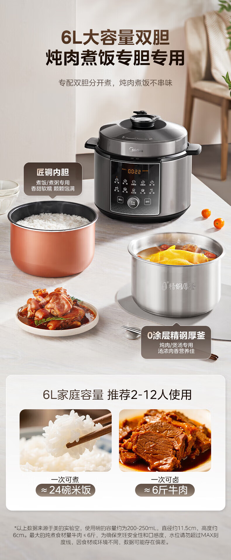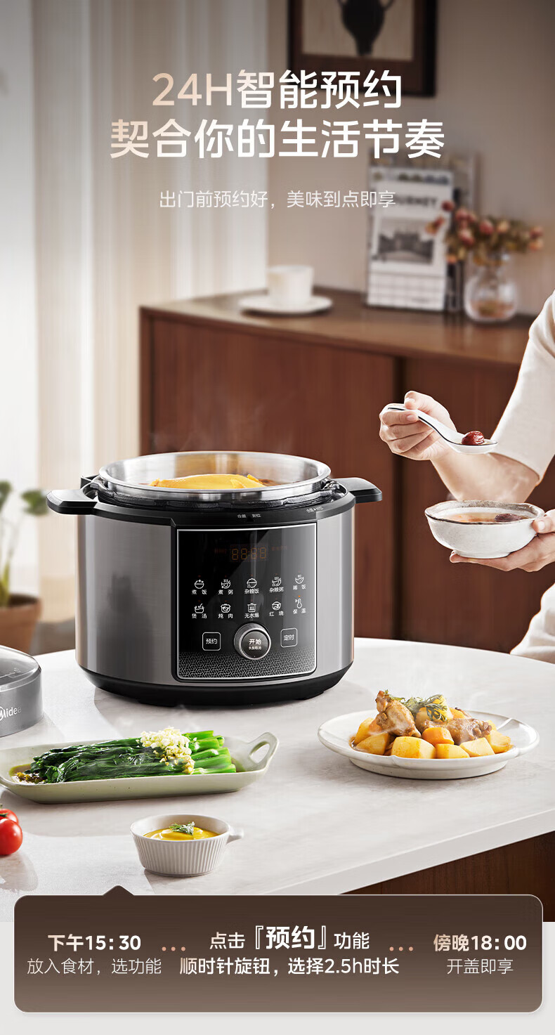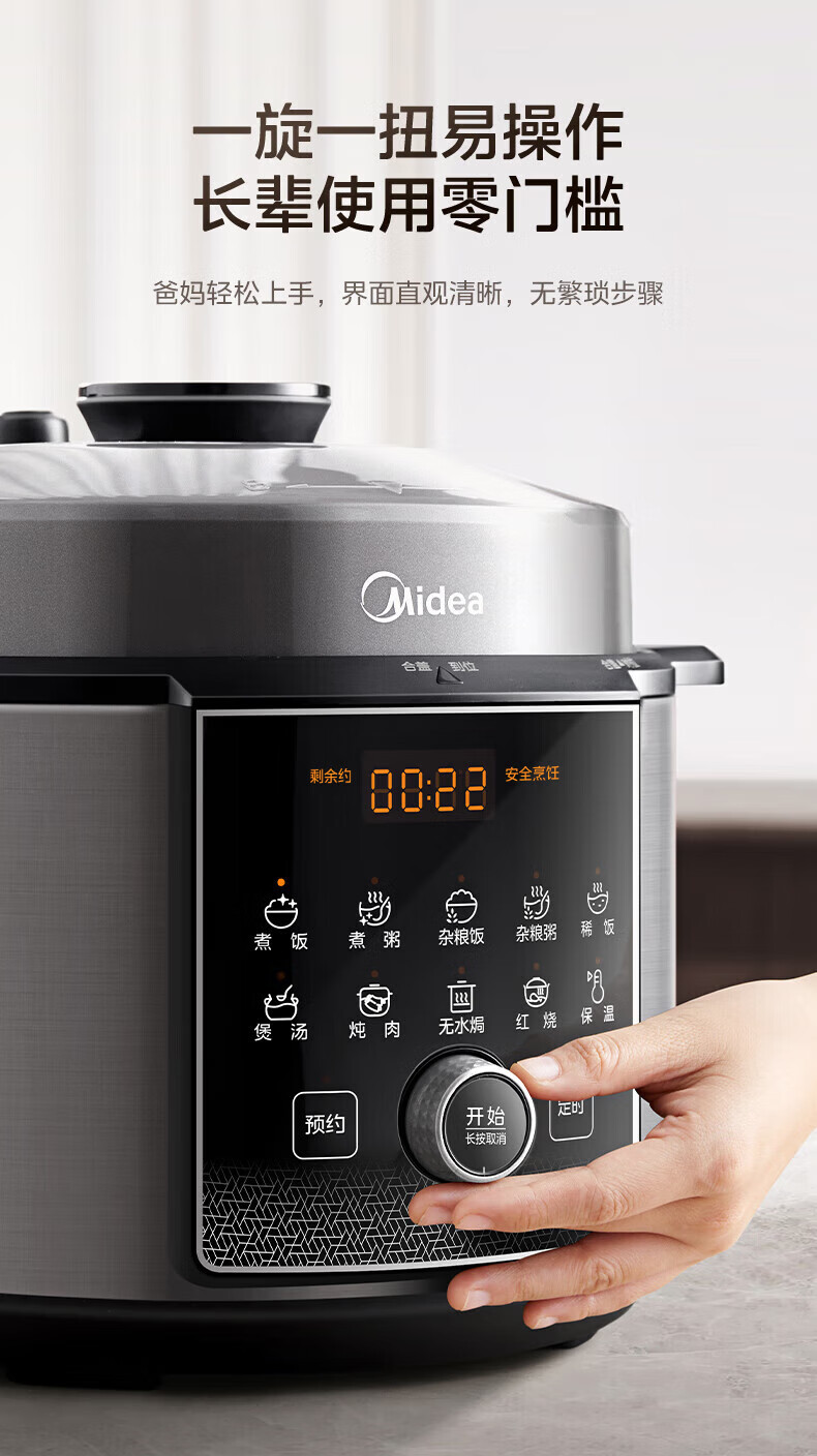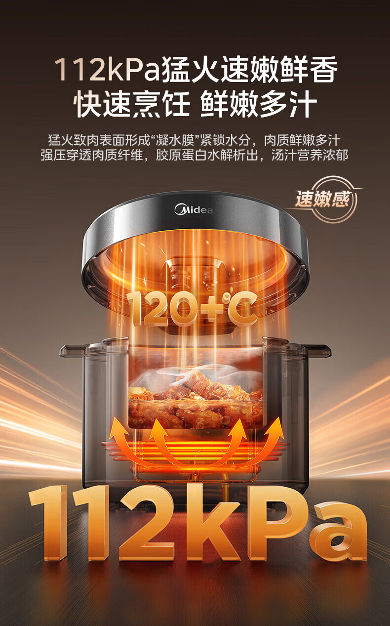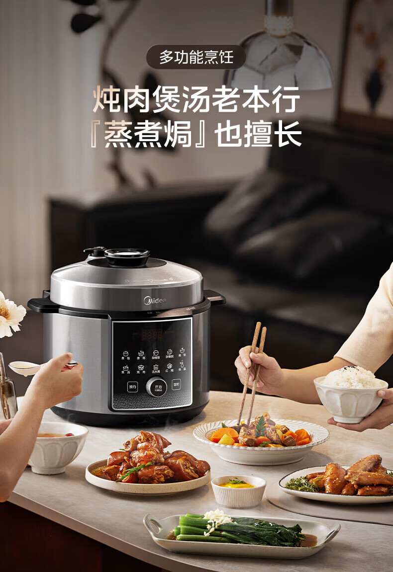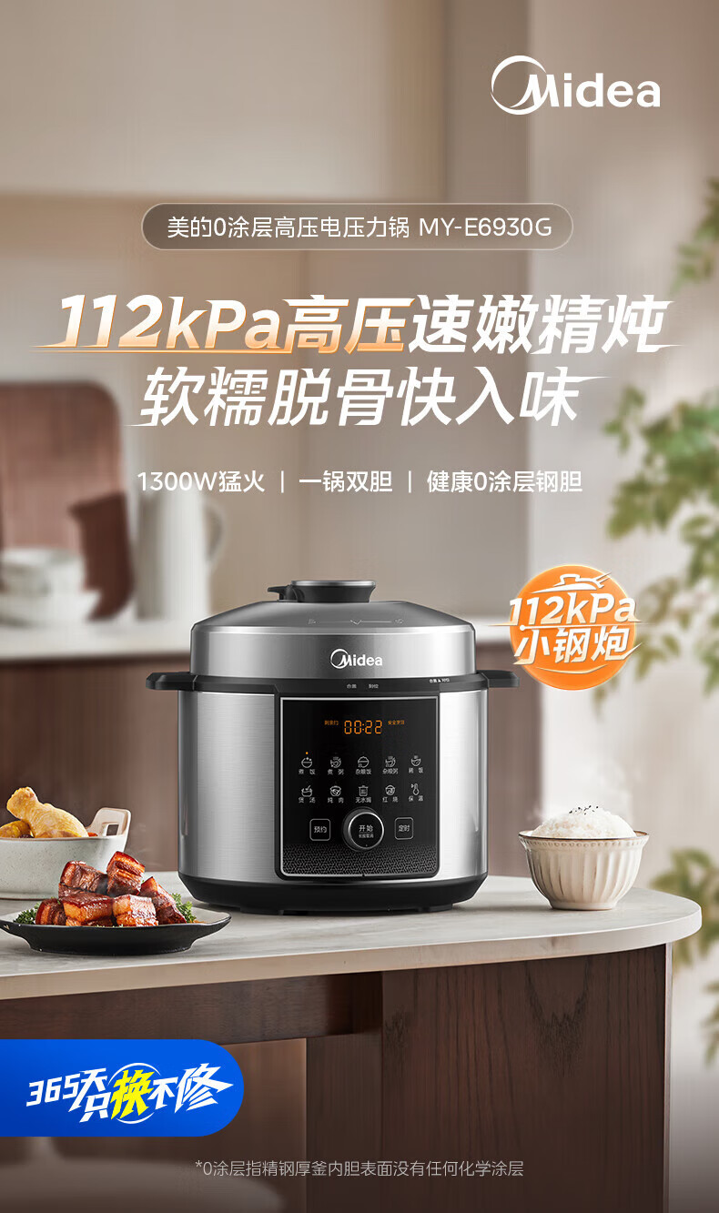 美的(Midea)电压力锅电高压锅0涂层6升大容量 112KPa小钢炮高压锅家用5-6-8个人 高压电饭锅不锈钢内胆电饭煲 【2025年新款 112Kpa高压猛火快炖 】 6L