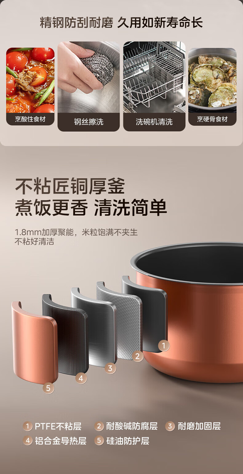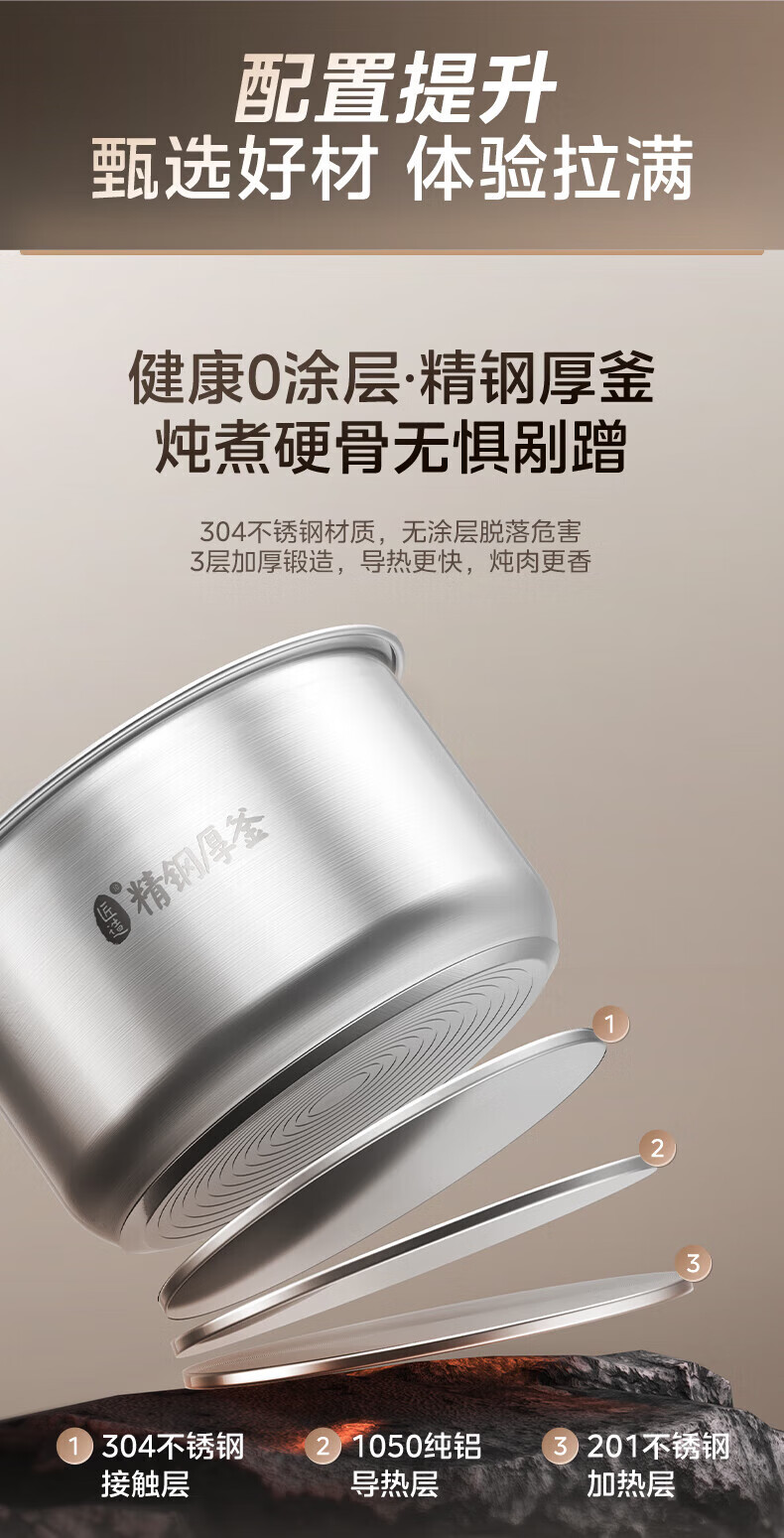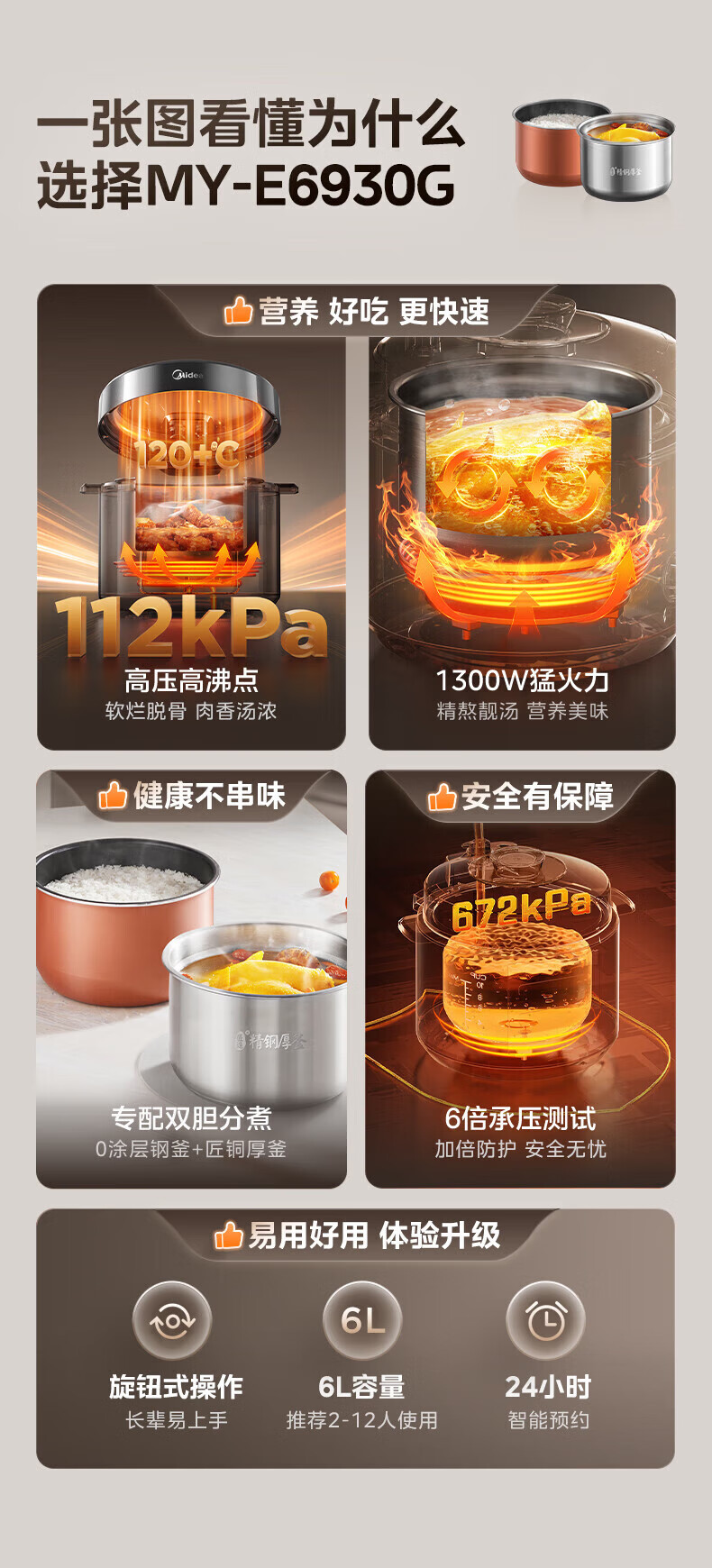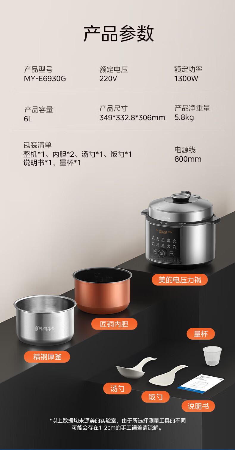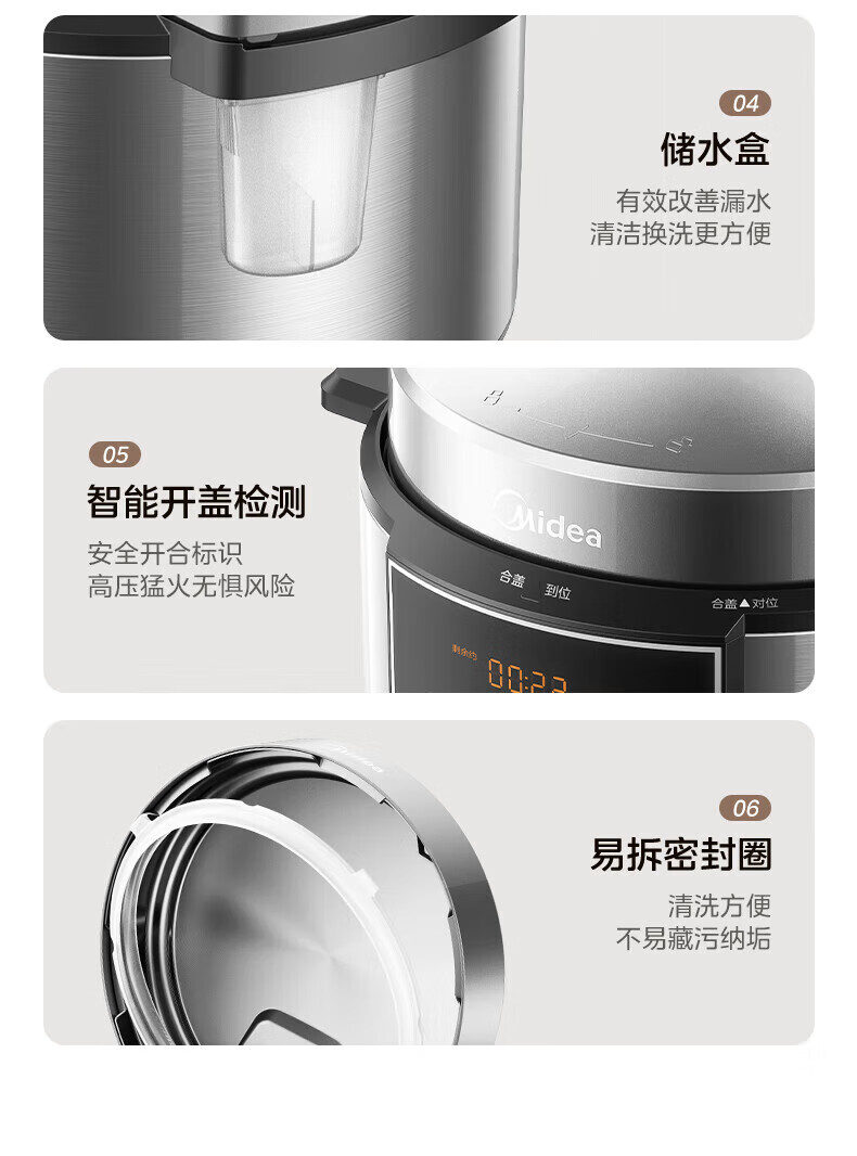 美的(Midea)电压力锅电高压锅0涂层6升大容量 112KPa小钢炮高压锅家用5-6-8个人 高压电饭锅不锈钢内胆电饭煲 【2025年新款 112Kpa高压猛火快炖 】 6L