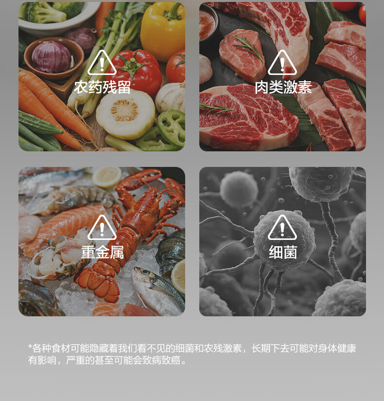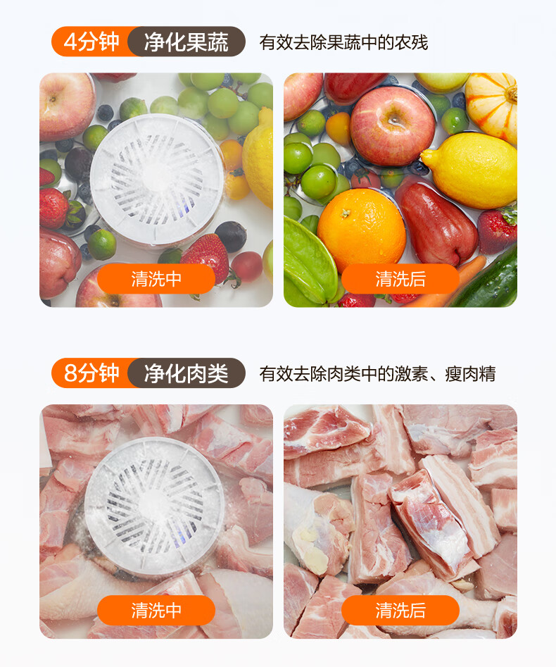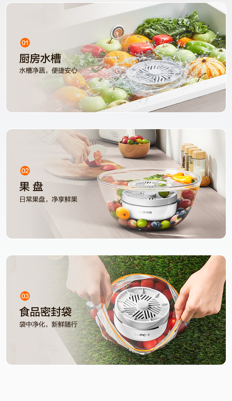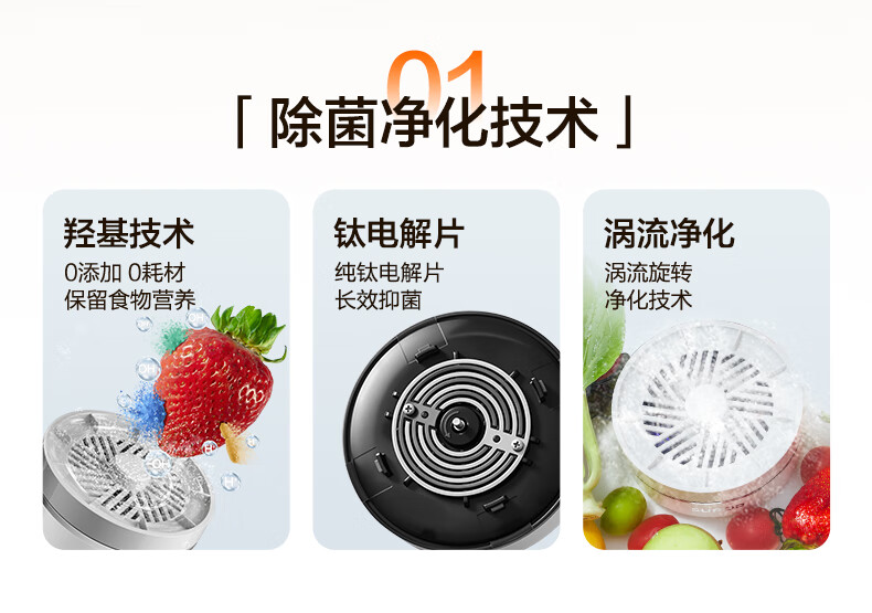 苏泊尔食材净化机果蔬清洗机蔬菜水果肉类谷物清洗器杀菌消毒去除农残重金属B 纯钛升级版【净化率99%+分解农残+降解重金属】