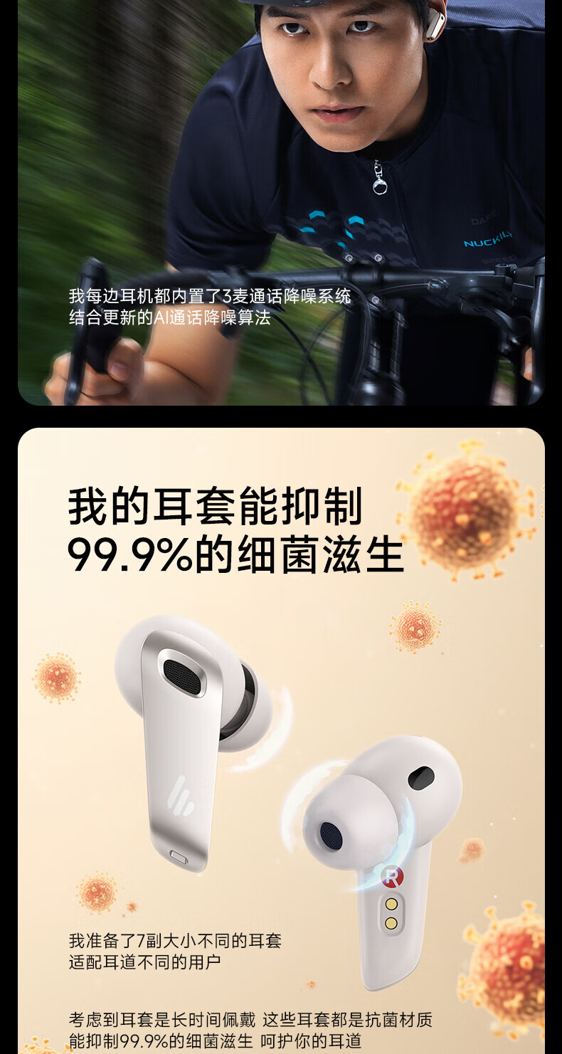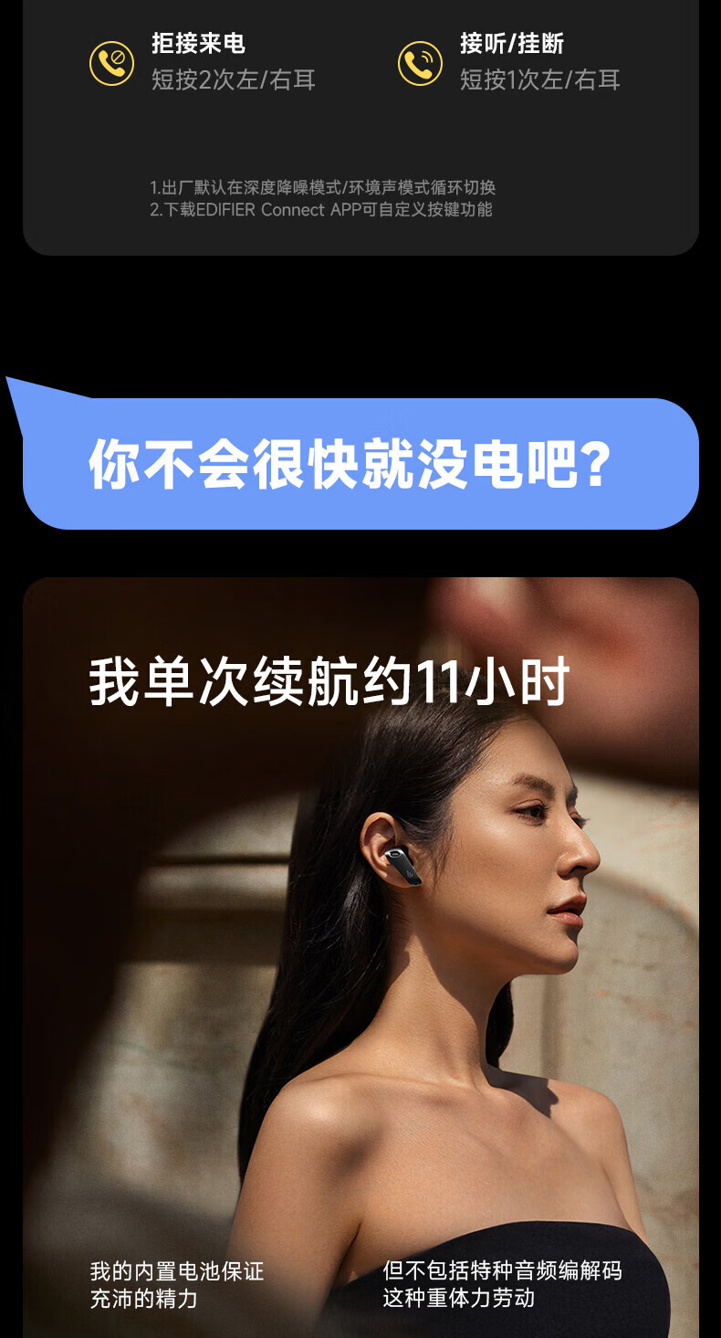 漫步者(EDIFIER)【2025新款】Comfo SE 开放式真无线蓝牙耳机 蓝牙V6.1 AI翻译 不入耳 运动跑步耳机 优雅白