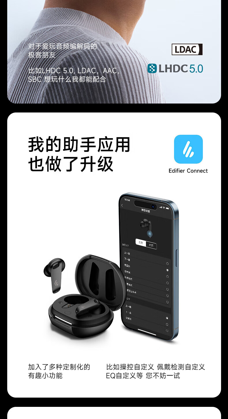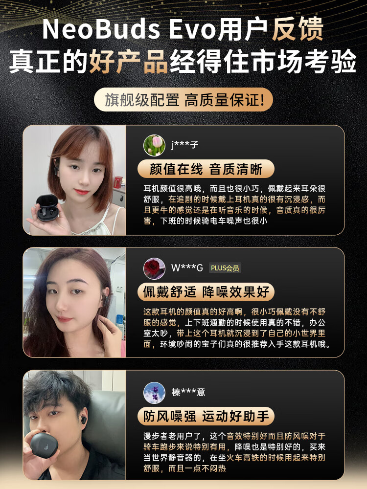 弱水时砂【周传雄推荐】earfeel i5无线蓝牙耳机入耳HiFi音质游戏运动耳机主动降噪长续航学生 武士黑|HiFi音质+强降噪+不压耳